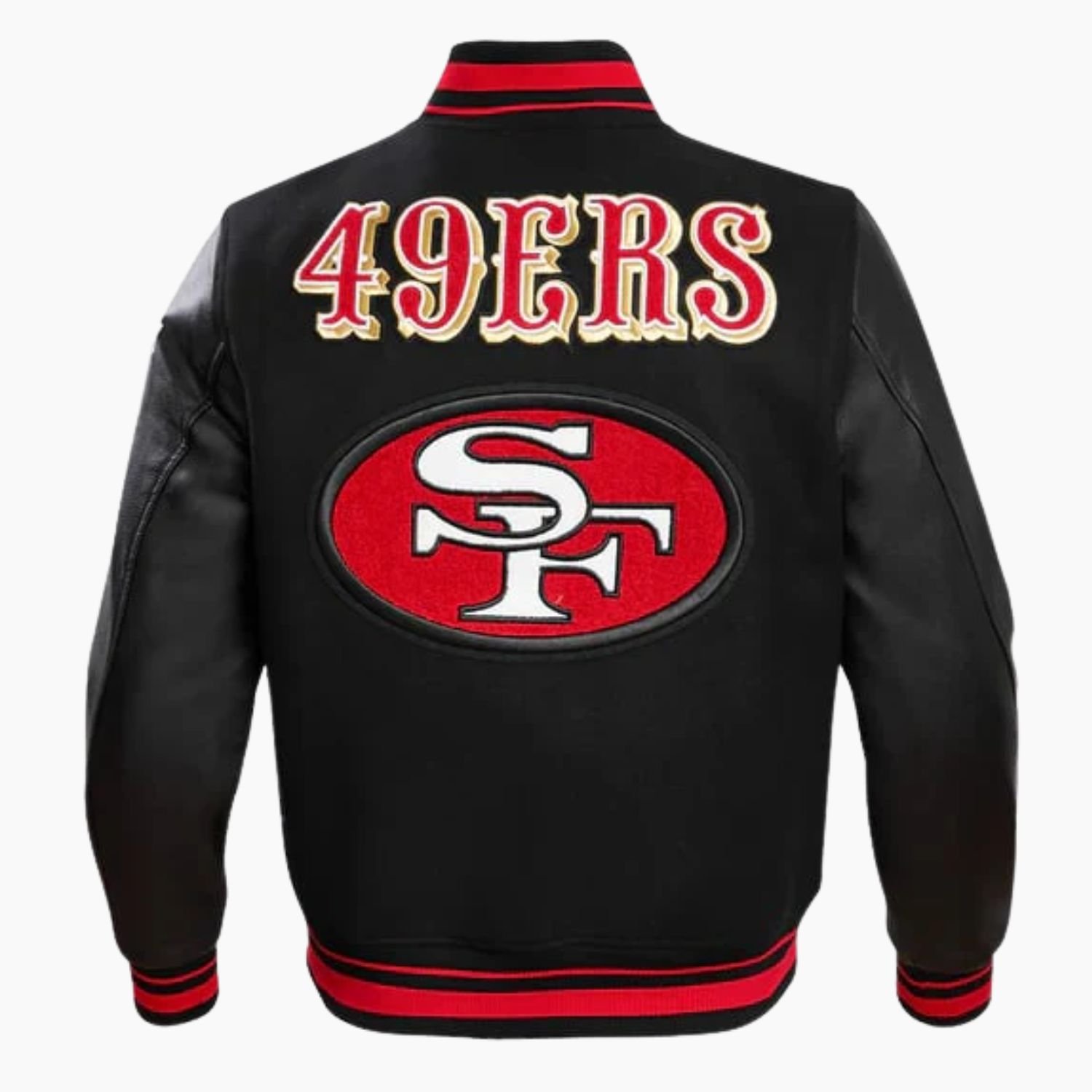 Made from premium wool fabric and optionally paired with genuine leather sleeves, this jacket features the iconic 49ers logo, classic team color accents, and striped rib-knit trims for a vintage yet bold finish. Its snap-button front, soft inner lining, and durable stitching make it a reliable choice for game days or everyday wear.