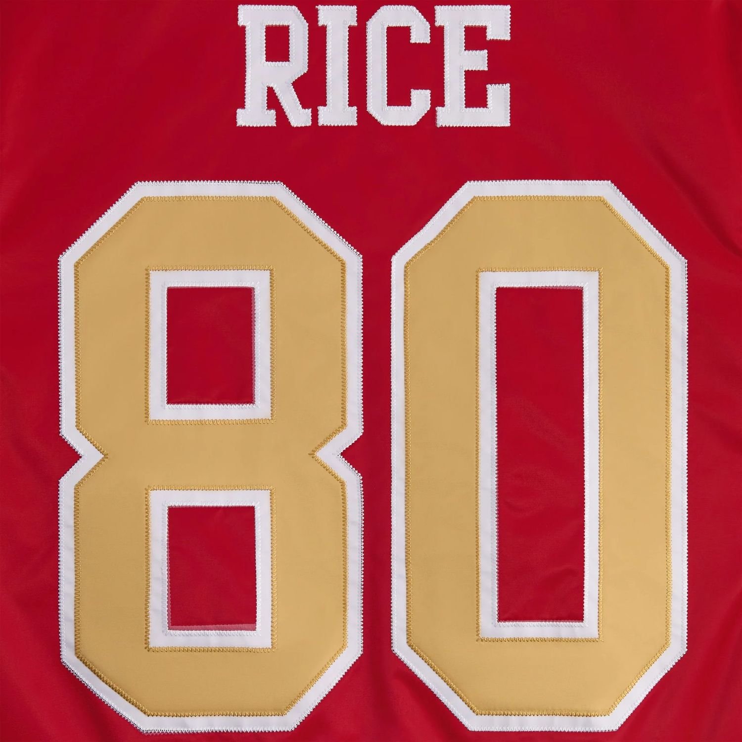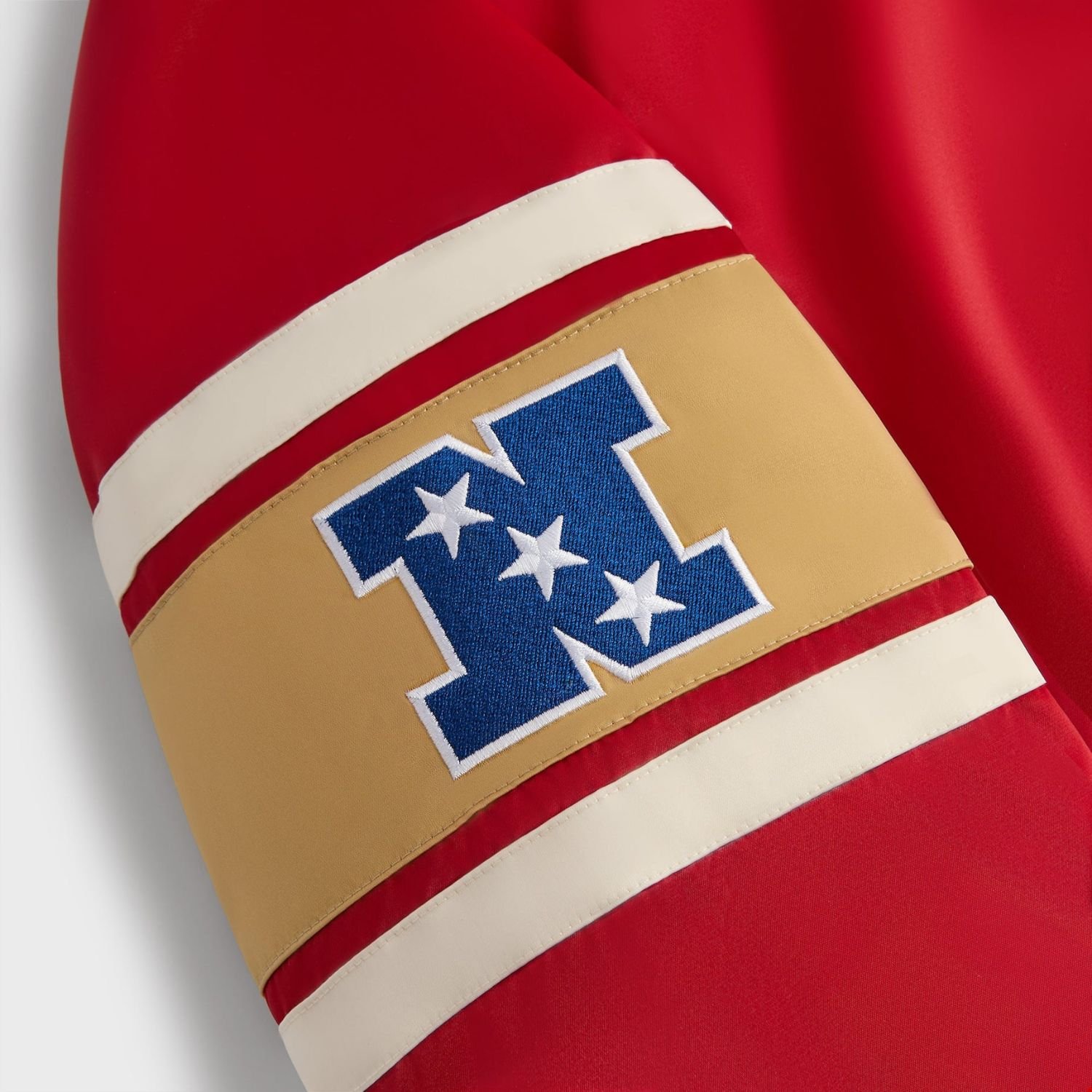 Striped sleeve panels and ribbed trims on the collar cuffs and hem add a bold athletic feel. Twill applique artwork on the front and back highlights your dedication to the San Francisco 49ers, while satin stitched embroidery on the sleeves completes the premium design. The bright red color makes this jacket a true statement piece for any fan.