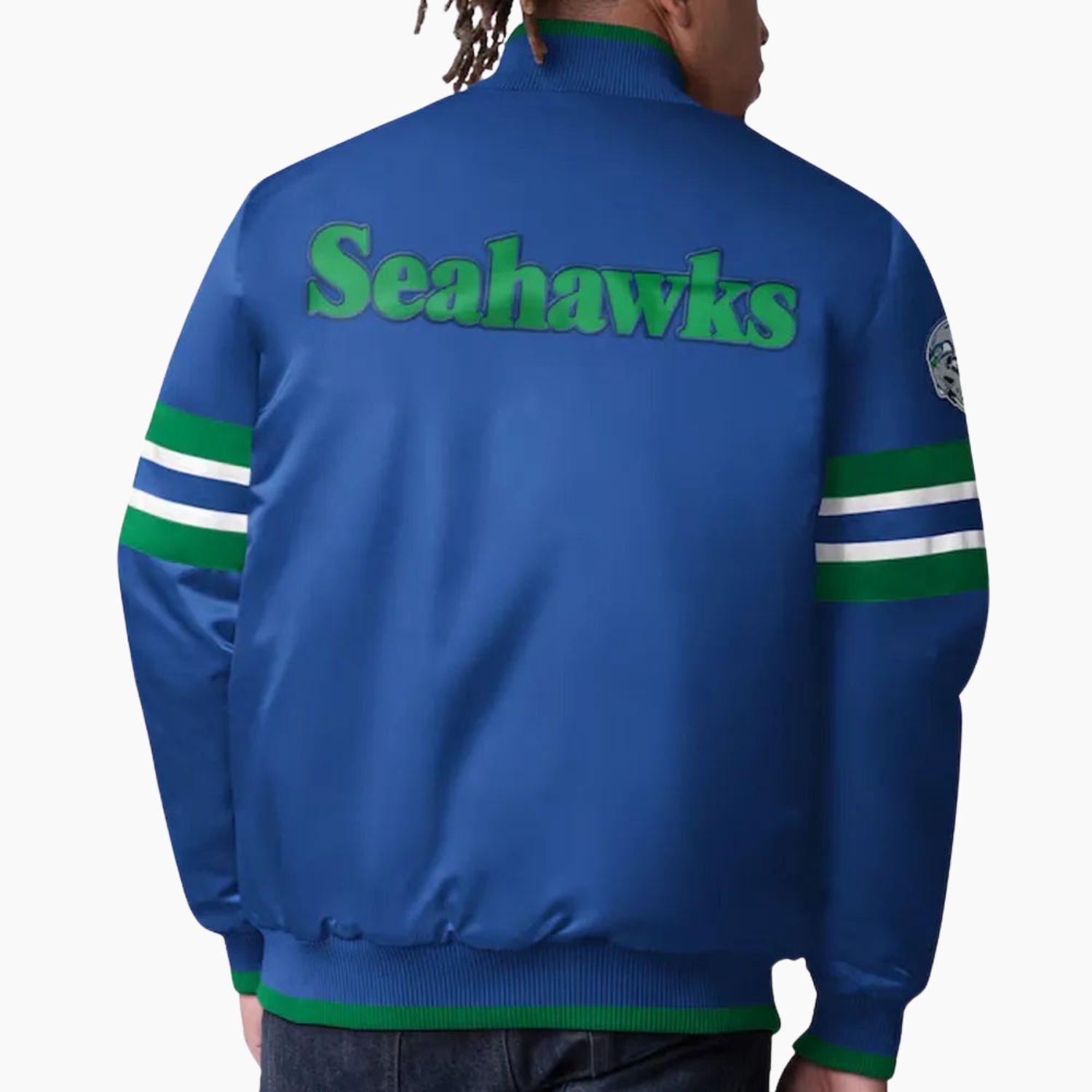Crafted with fine quality stitching this jacket promises long lasting wear whether you are heading to a game traveling or adding a stylish sports layer to your everyday outfits. Elevate your Seattle Seahawks spirit with this timeless blue satin varsity jacket built for true fans.