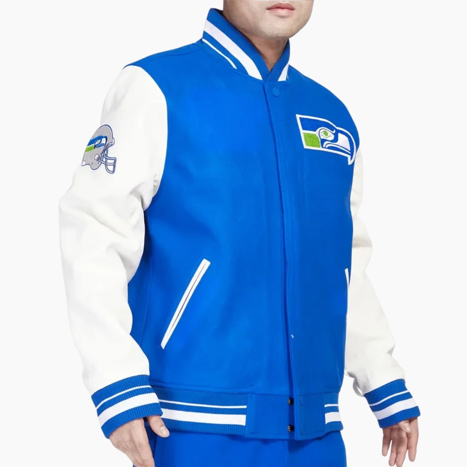 Show off your team pride with the NFL Seattle Seahawks Varsity Jacket, a high end satin high quality jacket crafted for fans across the USA who appreciate comfort style and authentic team inspired detailing. This jacket captures the bold spirit of the Seattle Seahawks with its striking blend of blue and white creating a standout look for game days or casual wear.