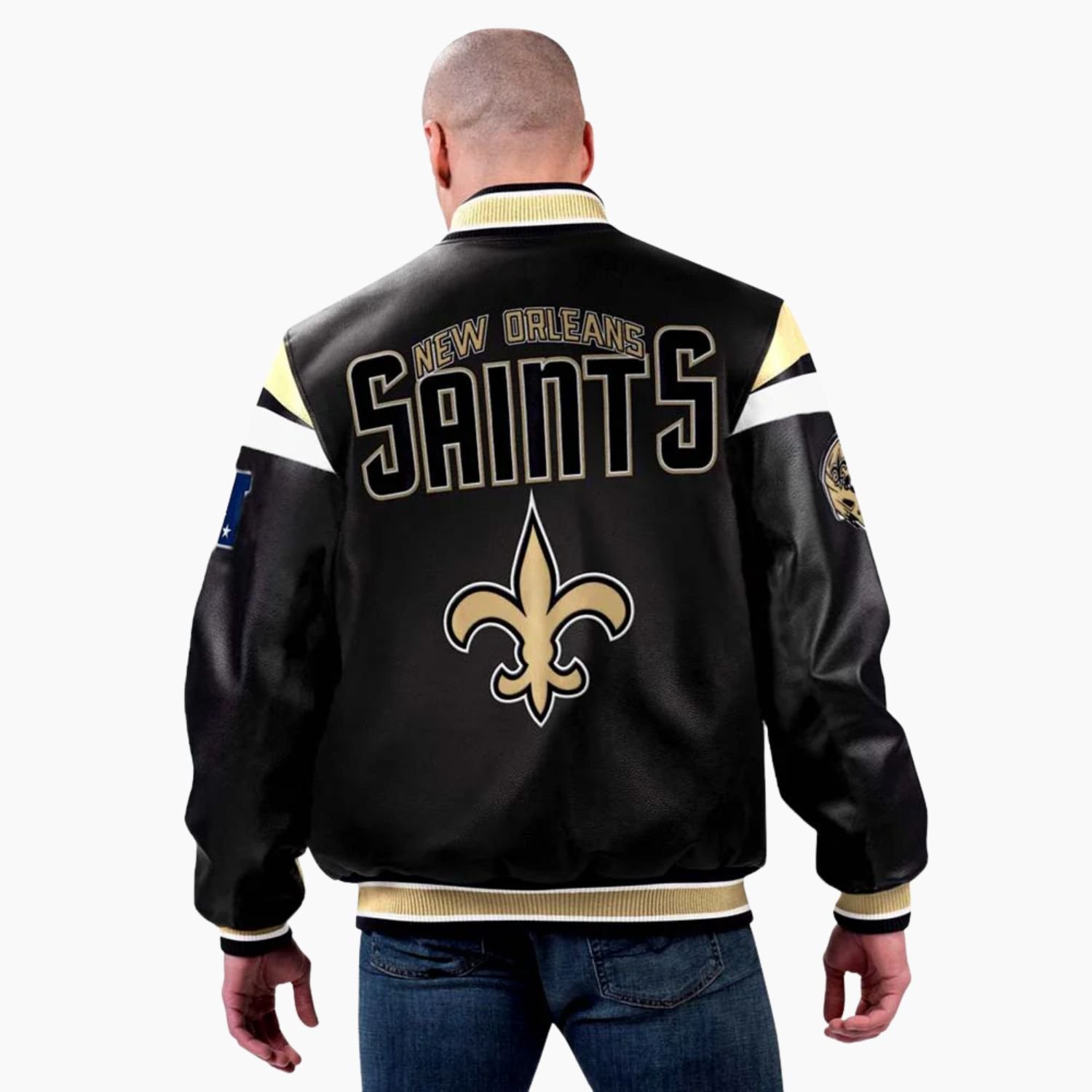 NFL Team New Orleans Saints Multicolor Varsity Leather Jacket
