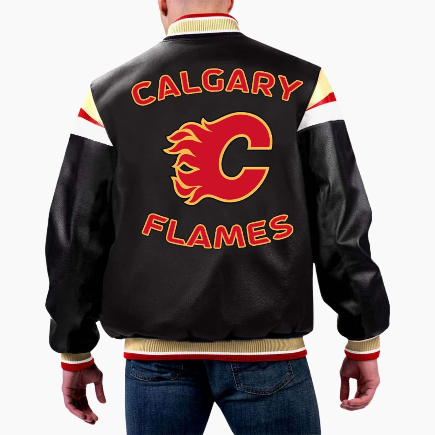 NHL Calgary Flames Varsity Leather Jacket For Men and Women