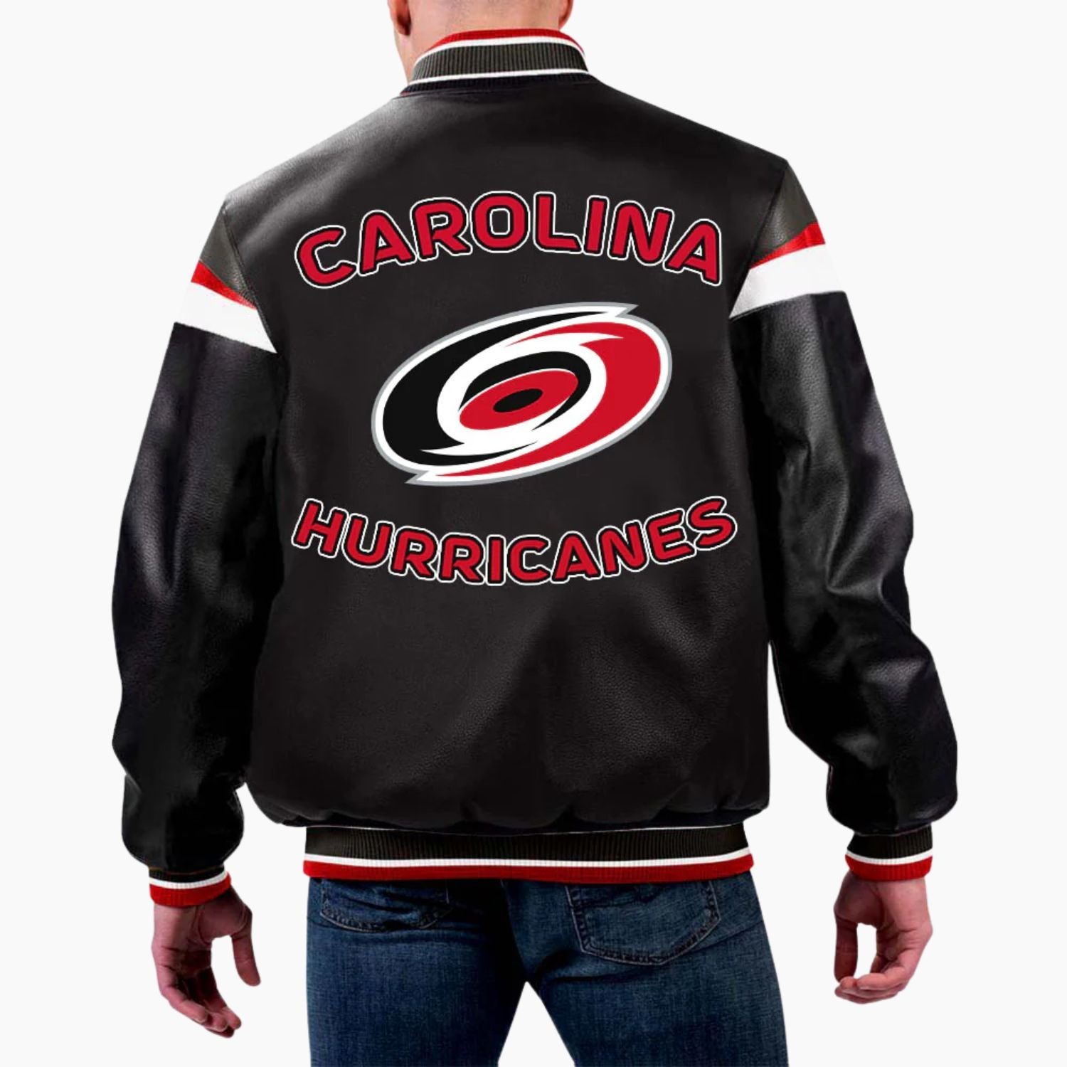 NHL Carolina Hurricanes Varsity Leather Jacket For Men and Women
