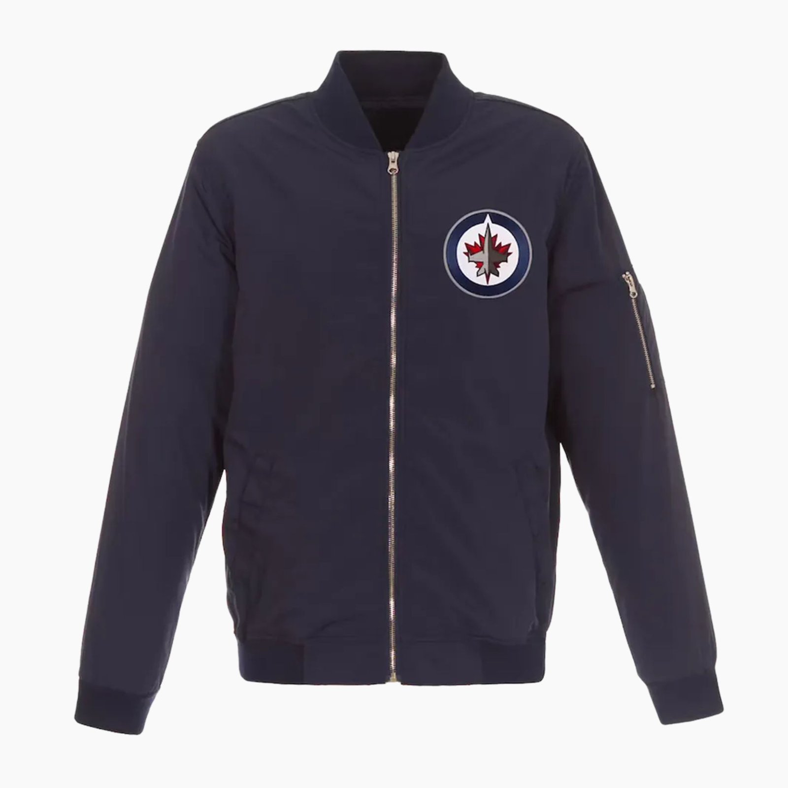 The NHL Winnipeg Jets Nylon Varsity Jacket is designed for fans who want a lightweight, sporty, and team inspired outerwear piece. Crafted from premium nylon, this jacket offers durability, a smooth finish, and a modern varsity look in a bold navy blue color. It is perfect for game days, casual outings, or everyday wear while showcasing your support for the Winnipeg Jets.