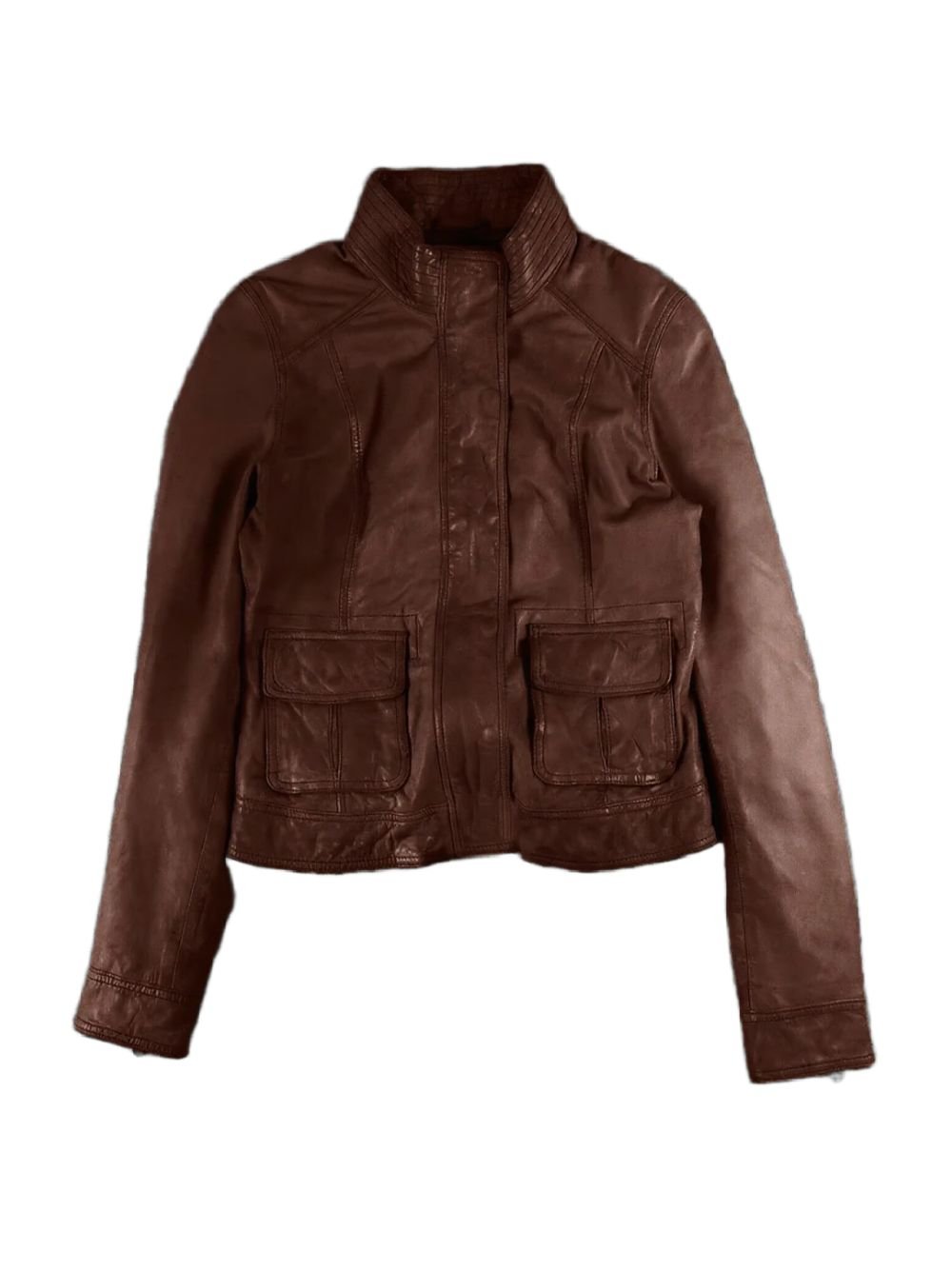 Made from high quality real leather, the jacket offers durability with a smooth and premium finish. The inner viscose lining ensures comfort and breathability, allowing easy wear throughout the day. Its stand up collar adds a modern and structured touch, enhancing the overall sharp silhouette.