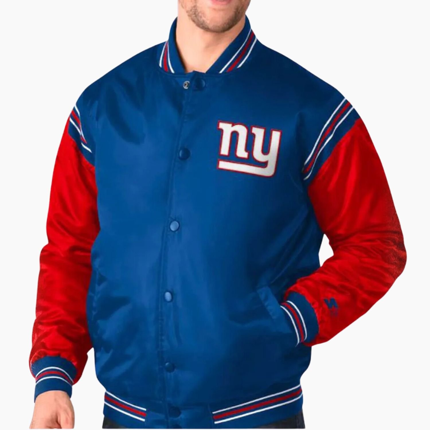 The NY Giants Red and Blue Satin Jacket brings bold team pride and premium sports style together in a standout piece designed for dedicated fans. Inspired by the legendary New York Giants this jacket offers a vibrant color combination that captures the classic team spirit while giving you a stylish edge for everyday wear. Whether you are heading to the stadium traveling or layering up for a casual day out this Giants jacket is the perfect choice for USA sports lovers.