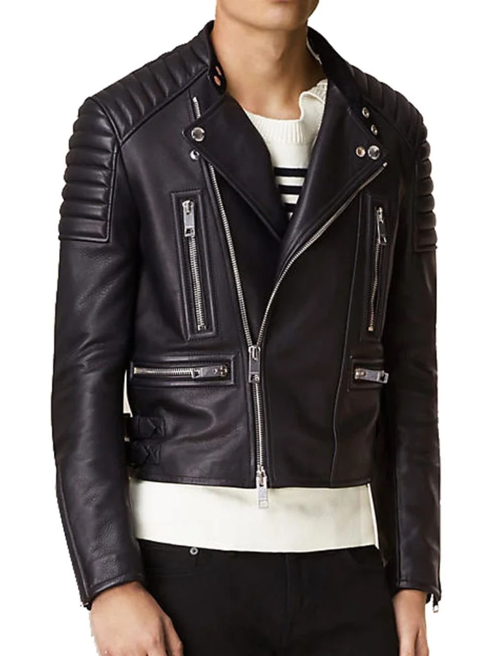 The Padded shoulders Asymmetrical Motorcycle Jacket by Movie Jackets Hub is made from real leather. The high quality of leather has been used for this production. There are two zip pockets on the chest, two on the waist and two more on the inside of the jacket. YKK zips are used for the front closure, pockets, and cuffs. You are guaranteed to get the screen accurate biker apparel in black color.