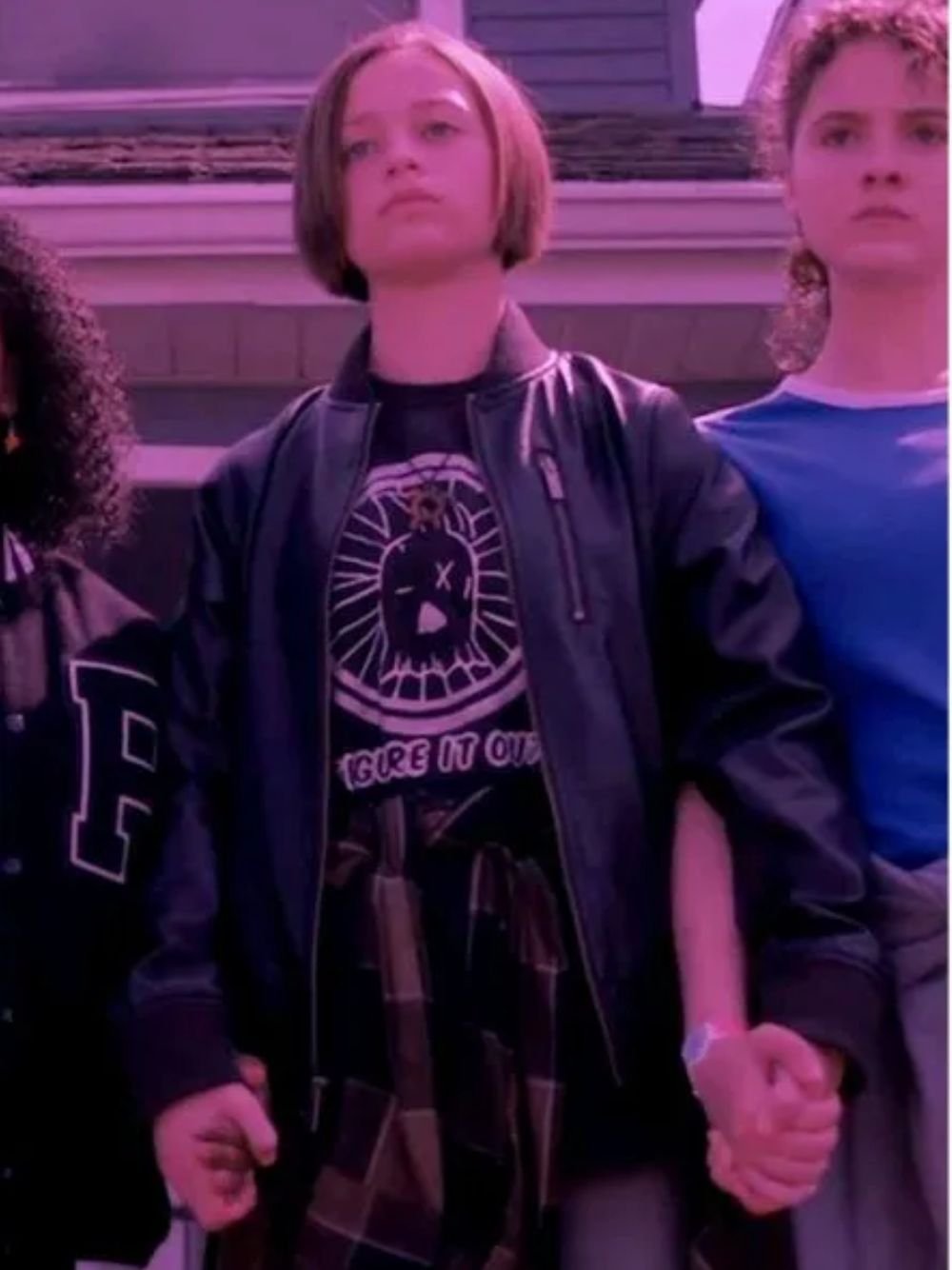 Sofia Rosinsky TV Show Paper Girls Mac Coyle Black Leather Bomber Jacket