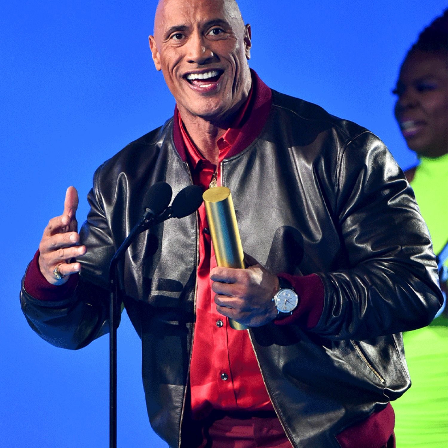 Dwayne Johnson Peoples Choice Award Black Leather Bomber Jacket