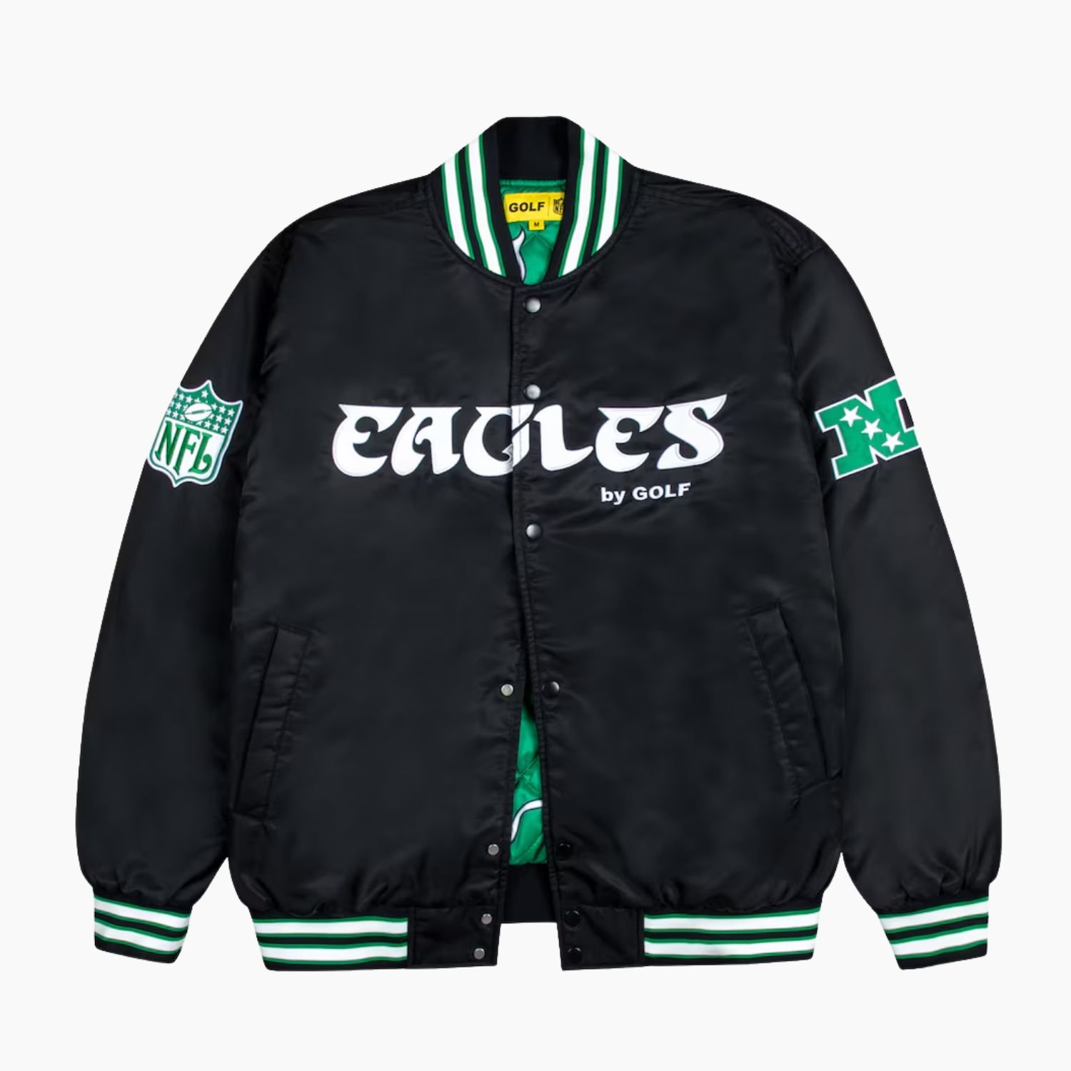 Show your NFL pride in classic varsity style with the Philadelphia Eagles Green and White Rib Bomber Black Jacket, inspired by the legendary Philadelphia Eagles. Designed for fans across the USA, this jacket combines premium materials, sporty detailing, and all-day comfort perfect for game days, tailgates, or casual wear.