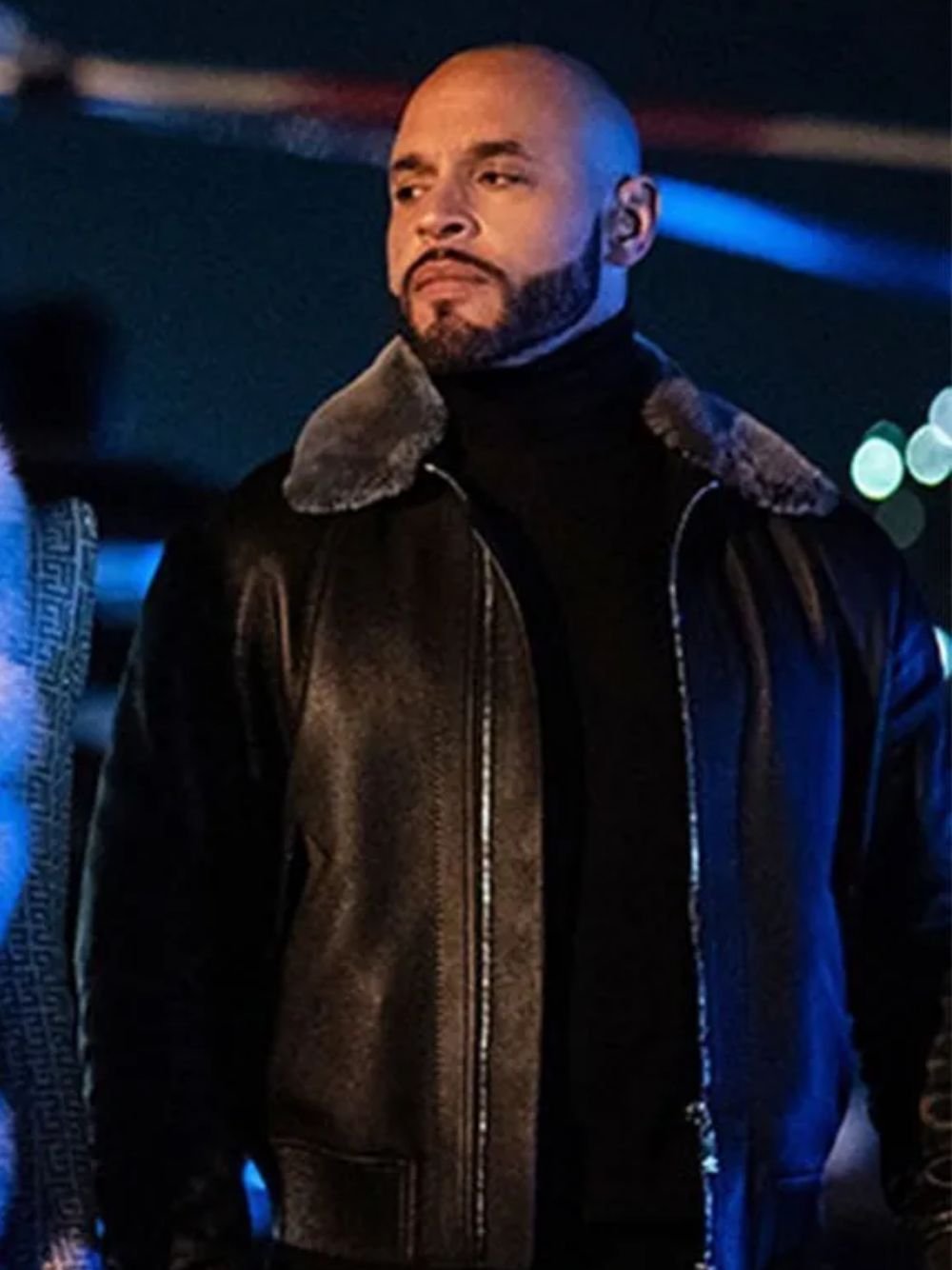 Berto Colon Power Book II Season 02 Ghost Lorenzo Tejada Black Genuine Fur Collar Leather Bomber Jacket