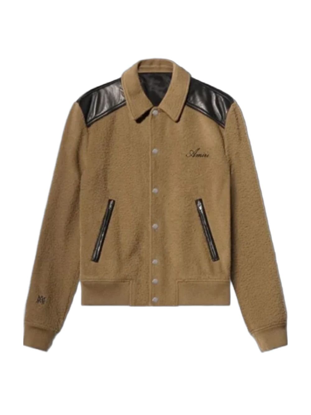 The rib knitted cuffs and hemline offer a secure and flexible fit, highlighting the signature varsity jacket design. With two side pockets and two inner pockets, you can store your essentials easily while enjoying a balanced and practical design. The rich brown color adds a refined touch, giving the jacket a polished appearance suitable for everyday styling.
