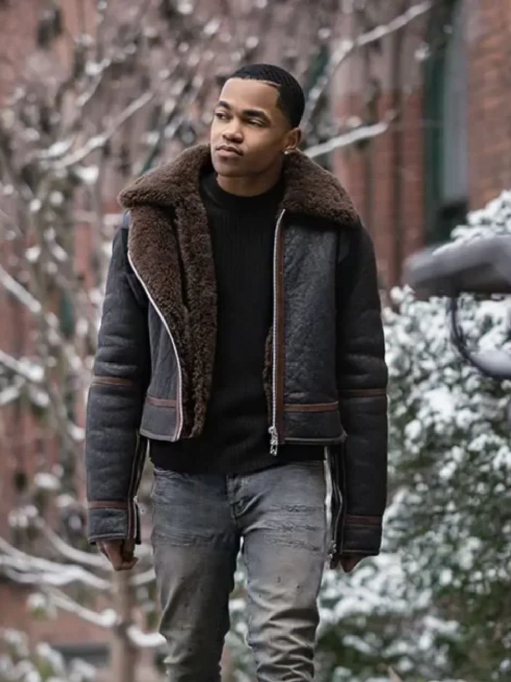 Stay warm and stylish with the Power Book II Ghost Tariq St Patrick Brown B3 Jacket by Movie Jackets Hub, inspired by Tariq’s iconic look in Season 2. Crafted from premium genuine leather with a soft genuine shearling fur lining, this B3 bomber jacket offers unmatched comfort, durability, and a luxurious feel.