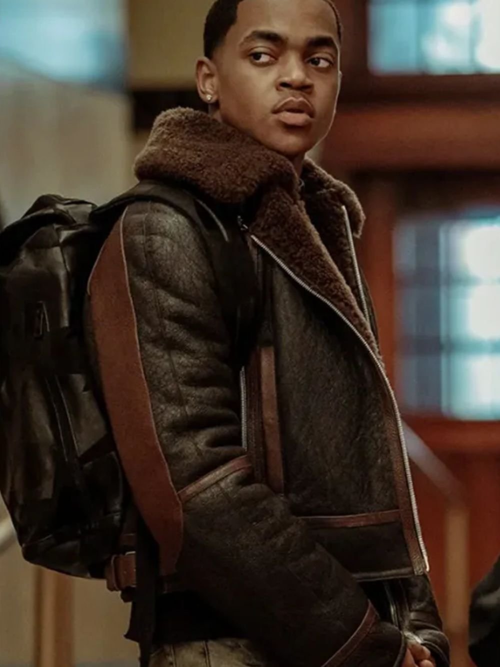 Michael Rainey Jr Power Book II Ghost Season 02 Tariq St Patrick Brown B3 Bomber Genuine Shearling Fur Leather Jacket