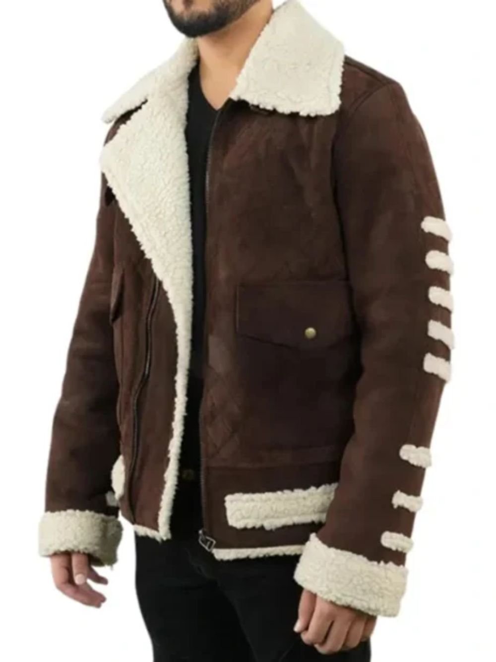 Made from soft suede leather with genuine fur lining, this jacket by Movie Jackets Hub offers warmth, comfort, and a luxurious feel. The full sleeves and wide genuine fur collar provide a sophisticated look, while the fur zippered cuffs add a modern, edgy touch. The front zipper closure ensures a secure fit and effortless wear.