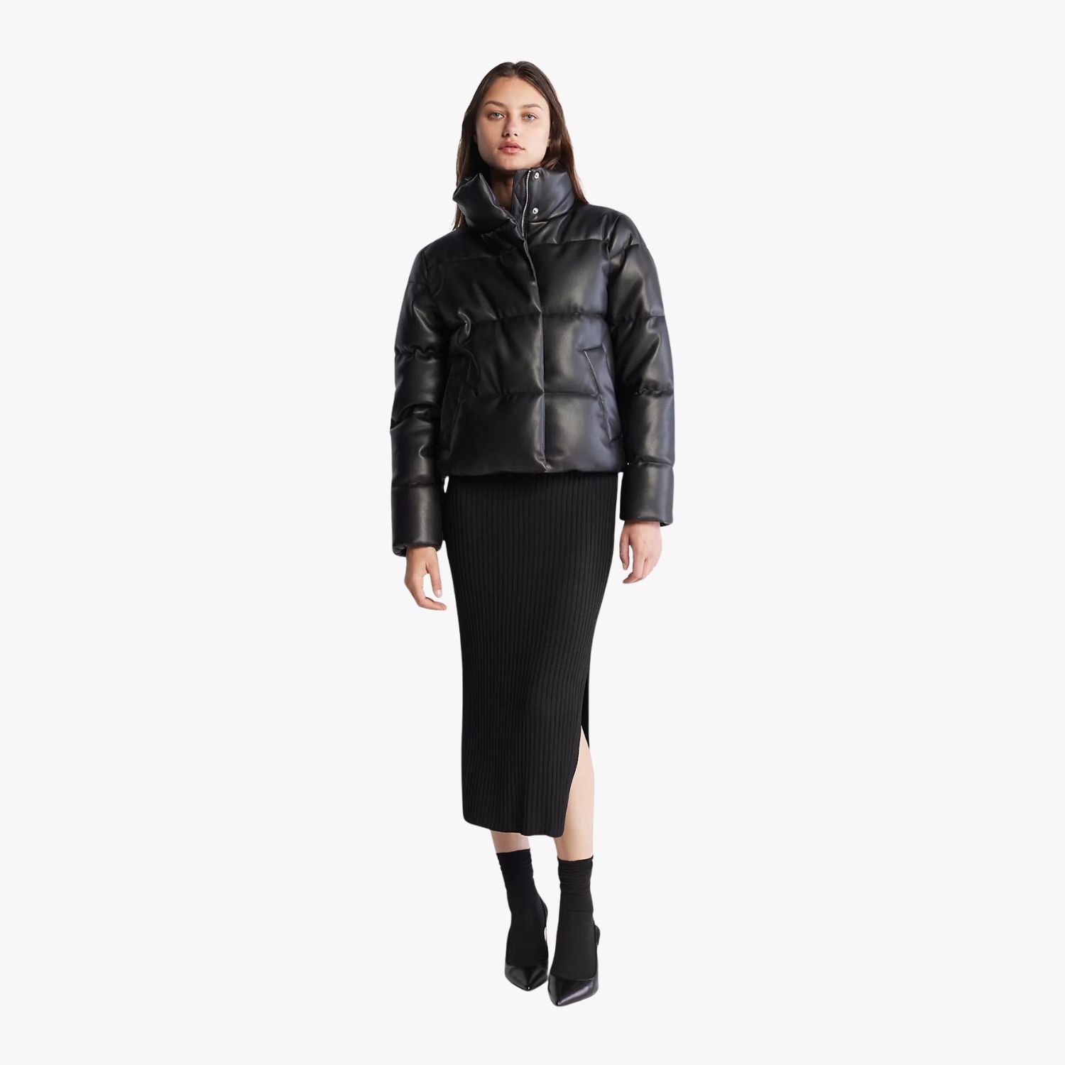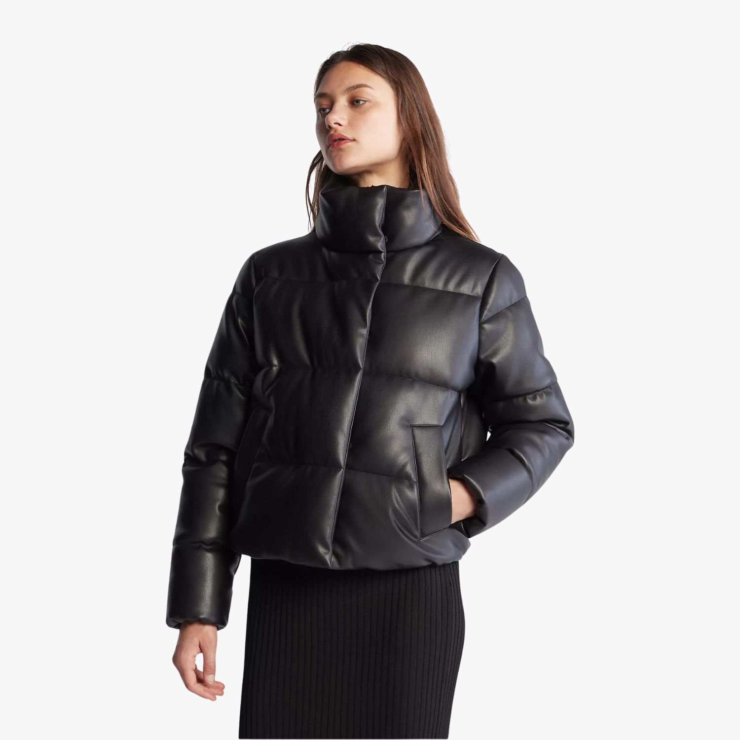 Upgrade your cold-weather aesthetic with the Premium Black Puffer Jacket, a sophisticated fusion of urban street style and high-performance insulation. This quilted jacket is engineered for the modern trendsetter who refuses to compromise on warmth or silhouette. Featuring a plain colored design with detailed stitching, the jacket offers a clean, minimalist look that highlights its superior craftsmanship. The outer shell is crafted from high-grade faux leather, providing a sleek, matte-black finish that is more durable and weather-resistant than standard nylon puffers, ensuring you look polished even in the harshest conditions.