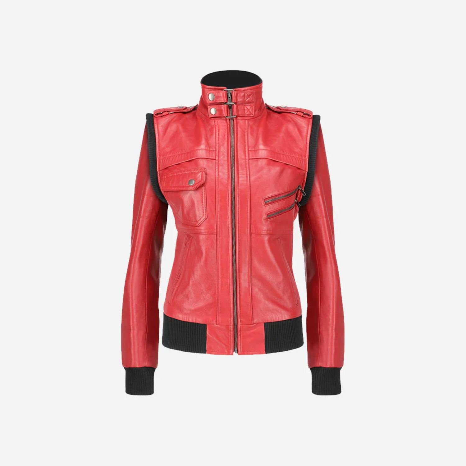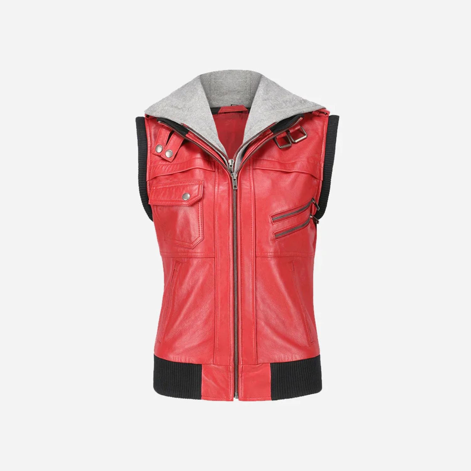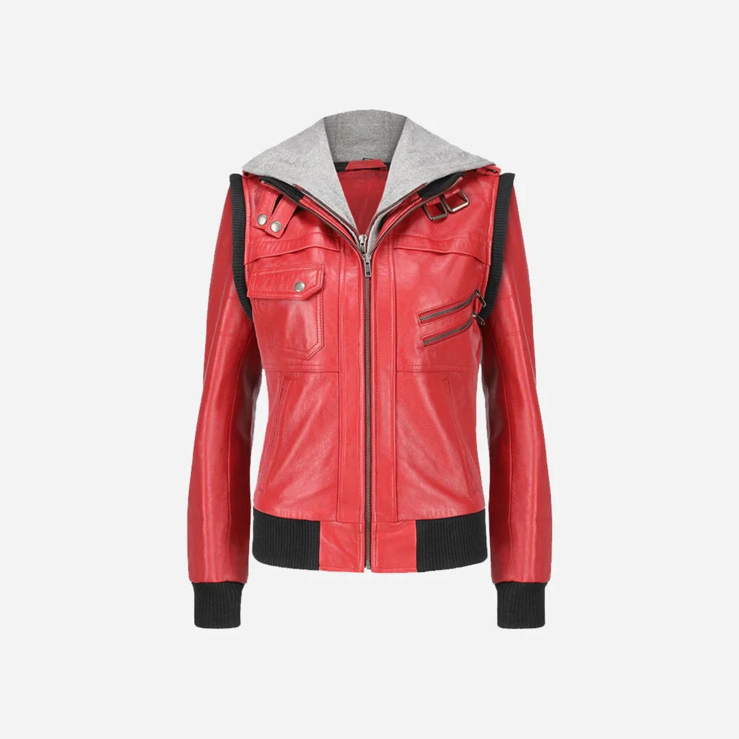 Premium Women’s Hooded Red Leather Jacket – Bold, Stylish & Versatile