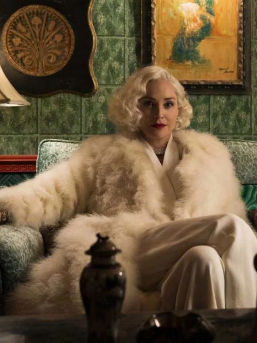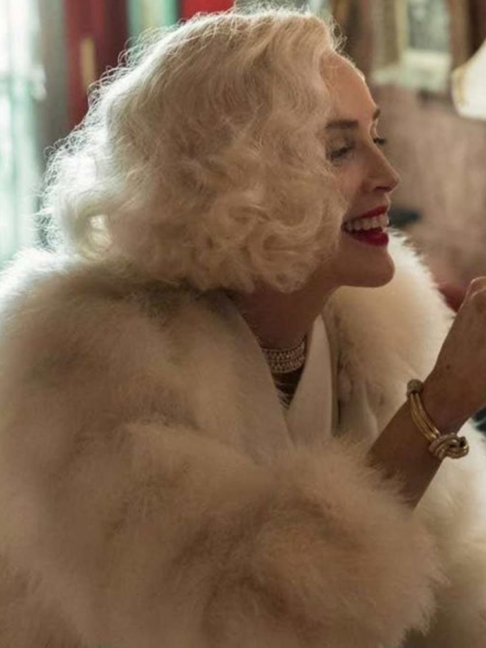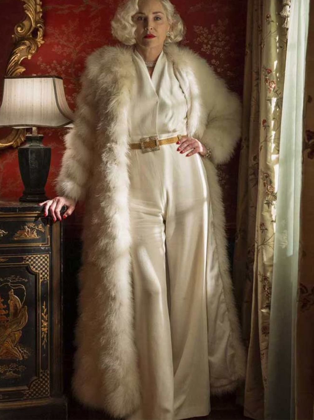 Sharon Stone Ratched Season 01 Lenore Osgood Long White Fur Coat