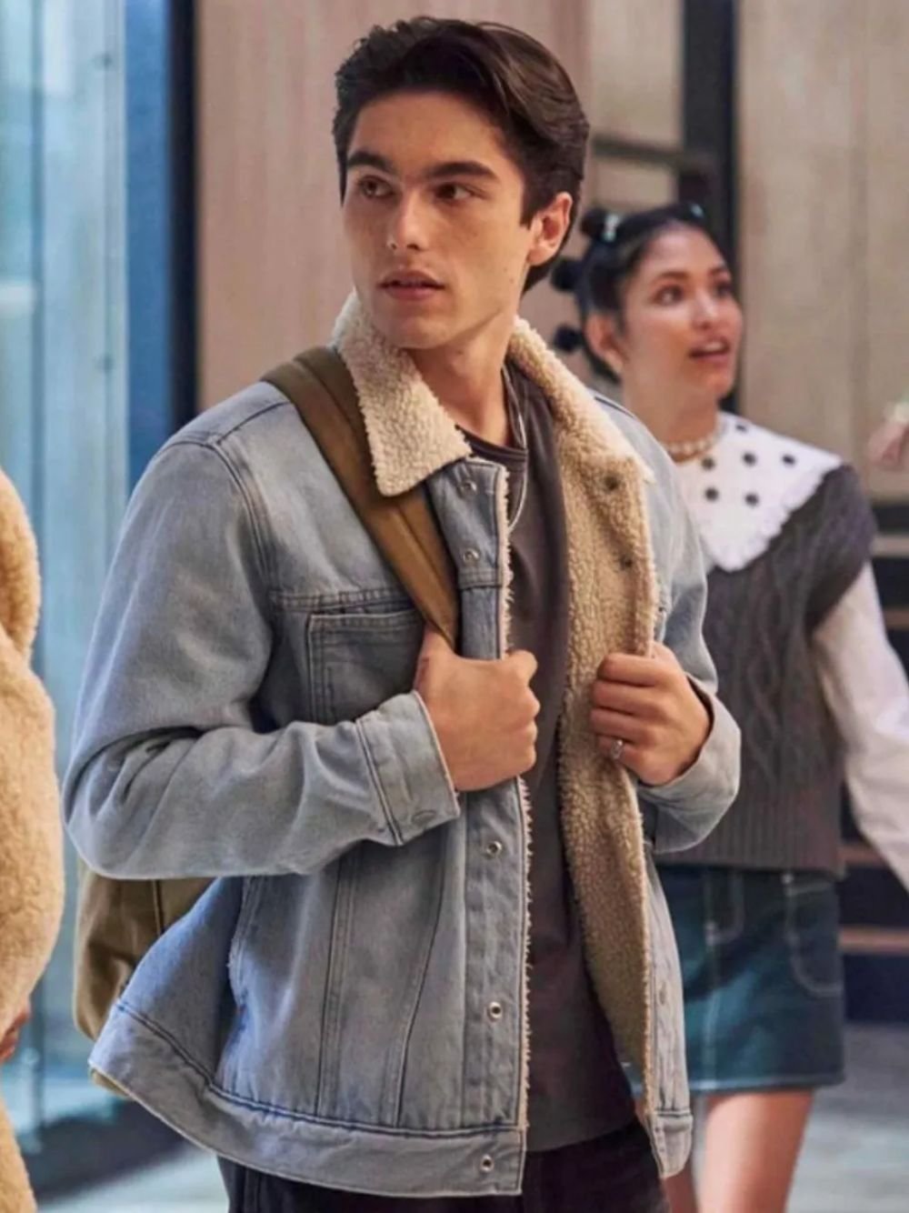 Sergio Mayer Mori Rebelde Estebán Torres Blue Sherpa Fur Denim Trucker Jacket