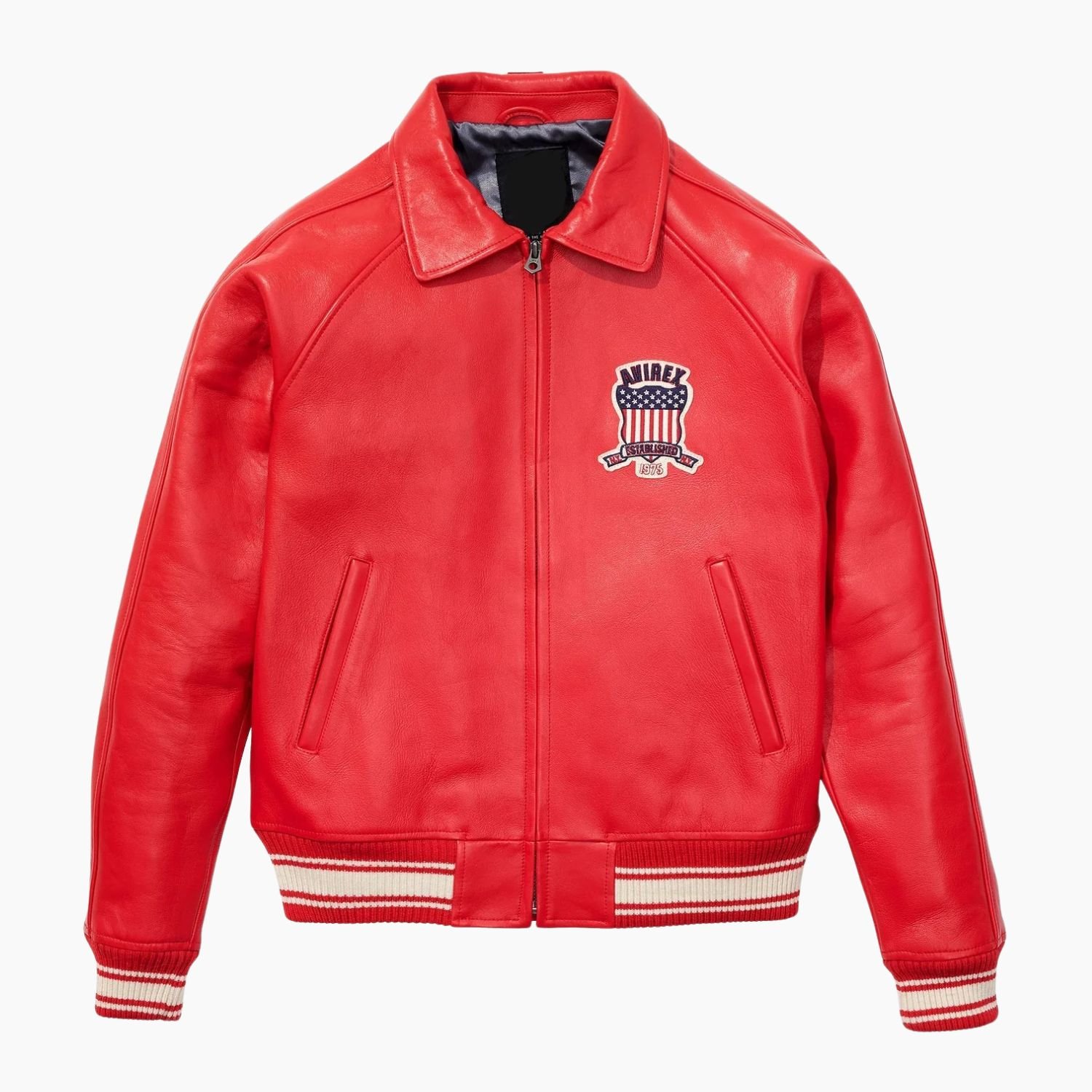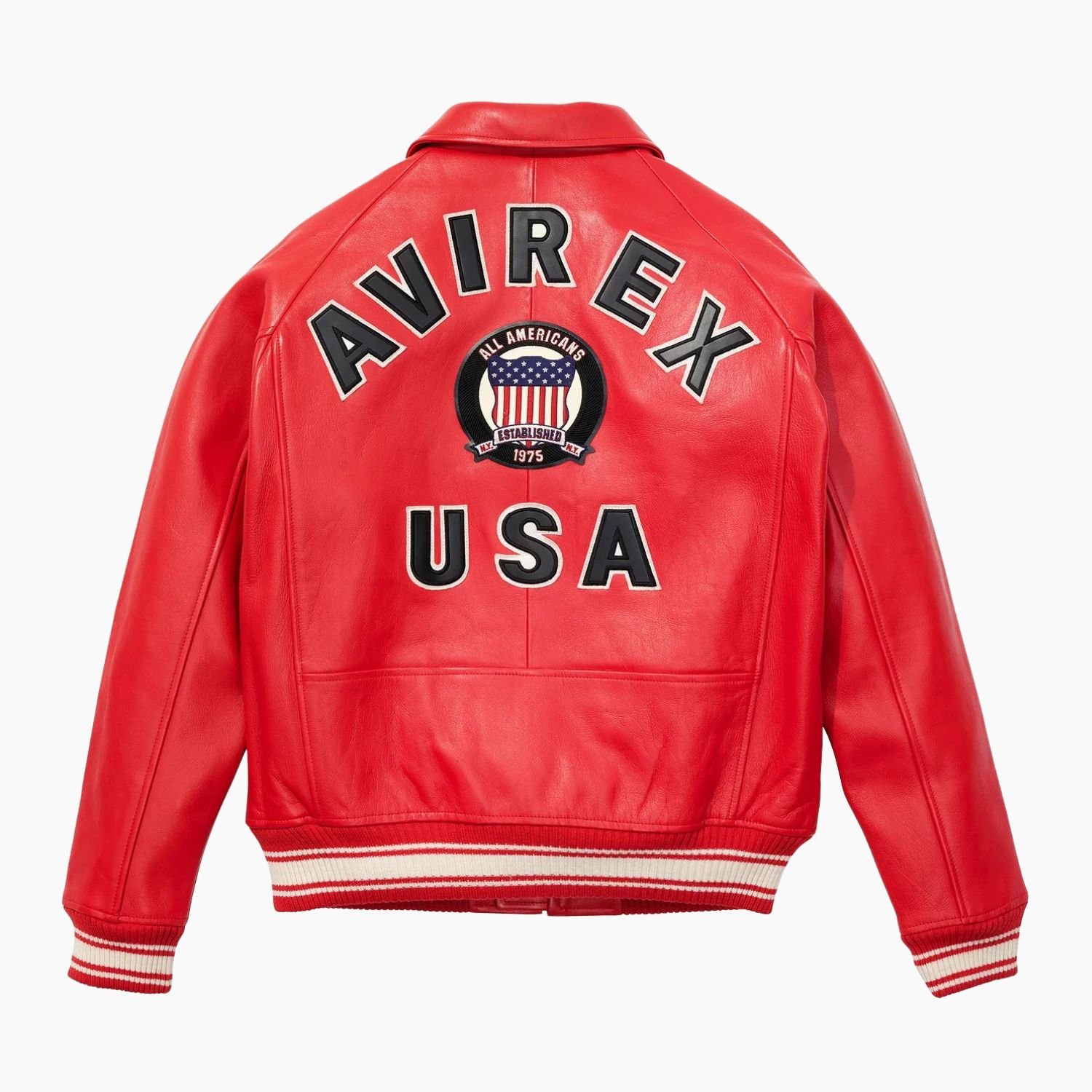 Red Avirex Icon Leather Jacket USA Wool Jacket For Men and Women