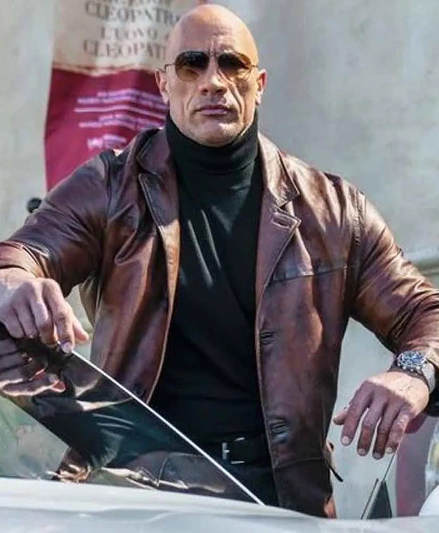 Red Notice Movie Dwayne Johnson Decant Leather Coat