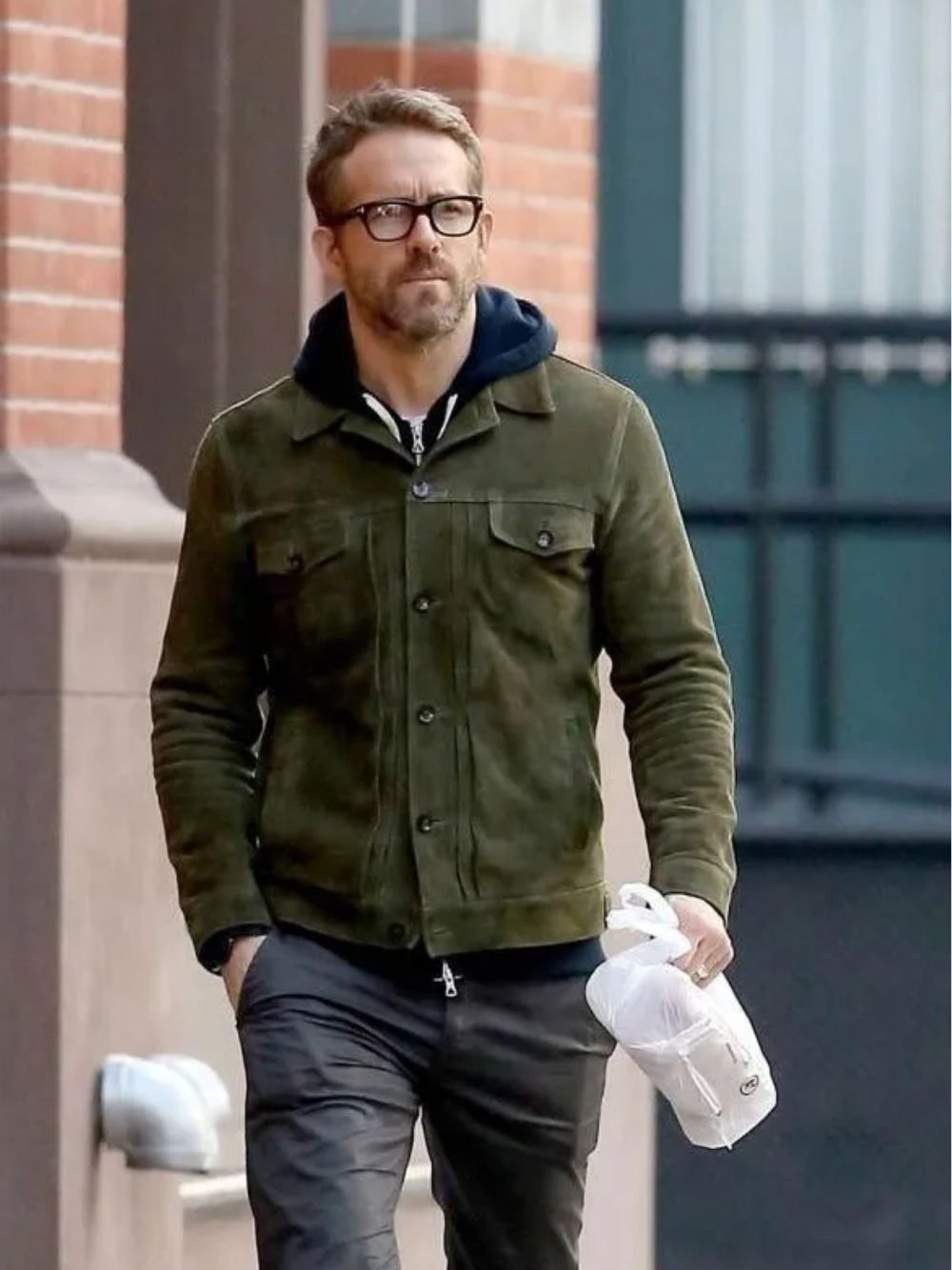 The Red Notice Ryan Reynolds Green Jacket brings a clean stylish look inspired by frontier themed outerwear seen in modern film and game culture. Designed for fans who enjoy high quality suede leather fashion this jacket delivers a refined yet rugged appearance perfect for everyday wear cosplay or casual layering.