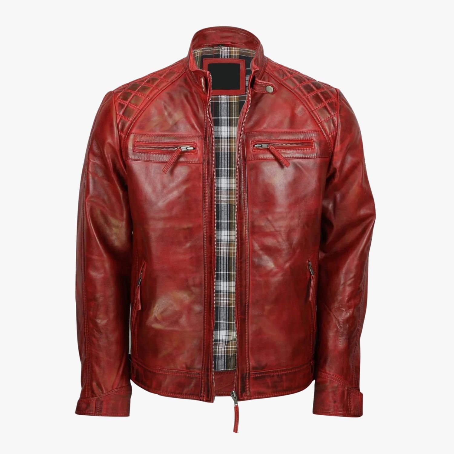 Red Vintage Biker Leather Jacket