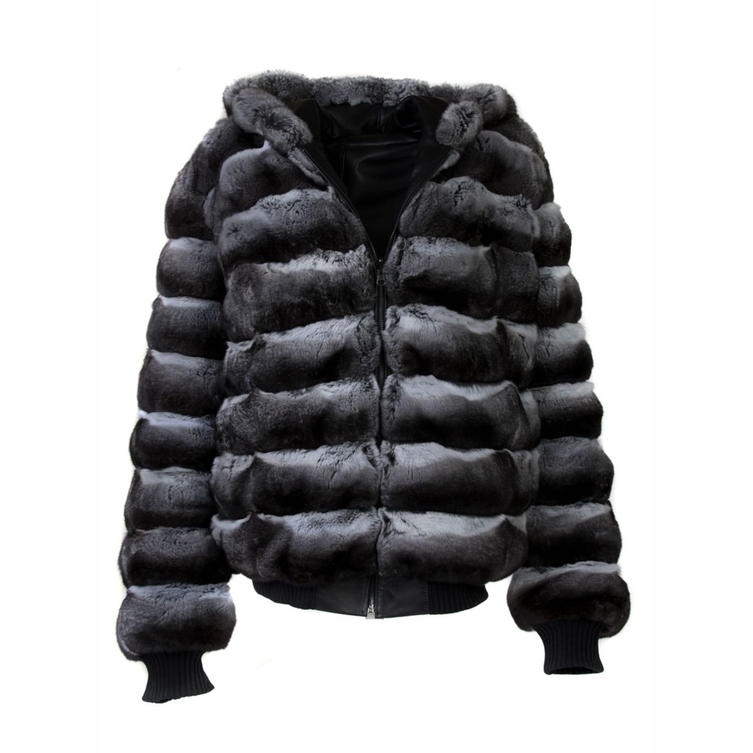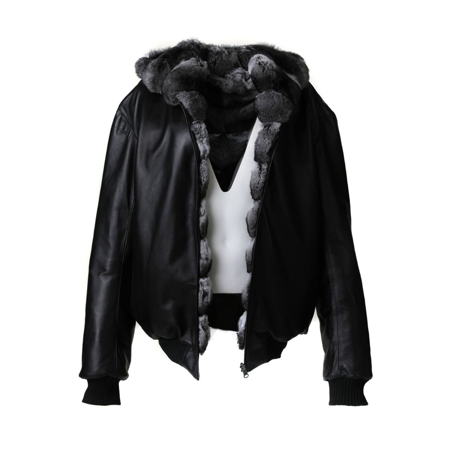 Reversible Hooded Chinchilla Leather Bomber Jacket
