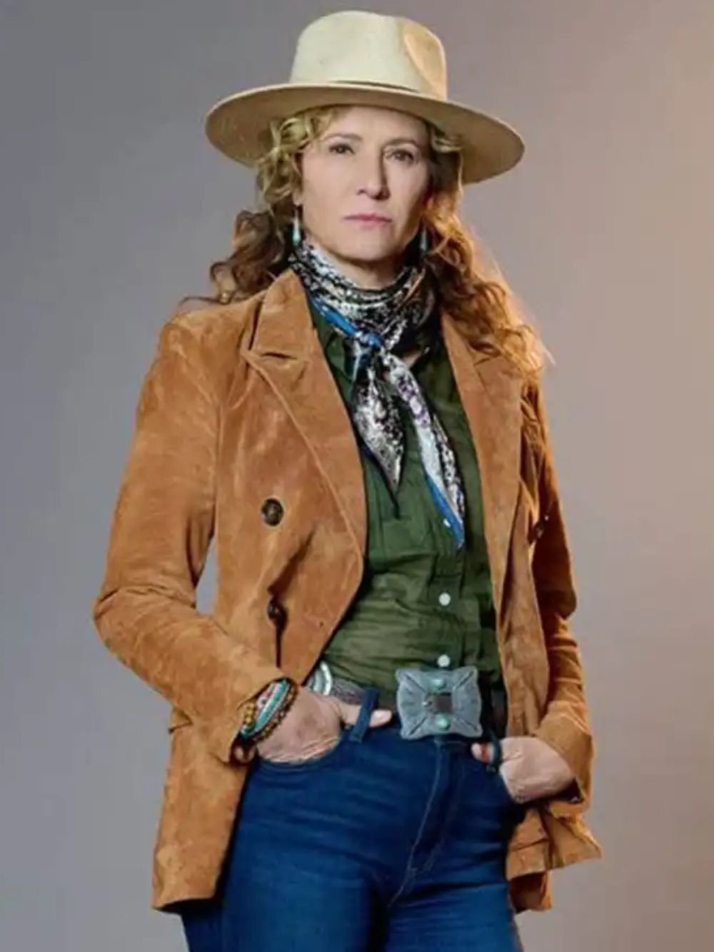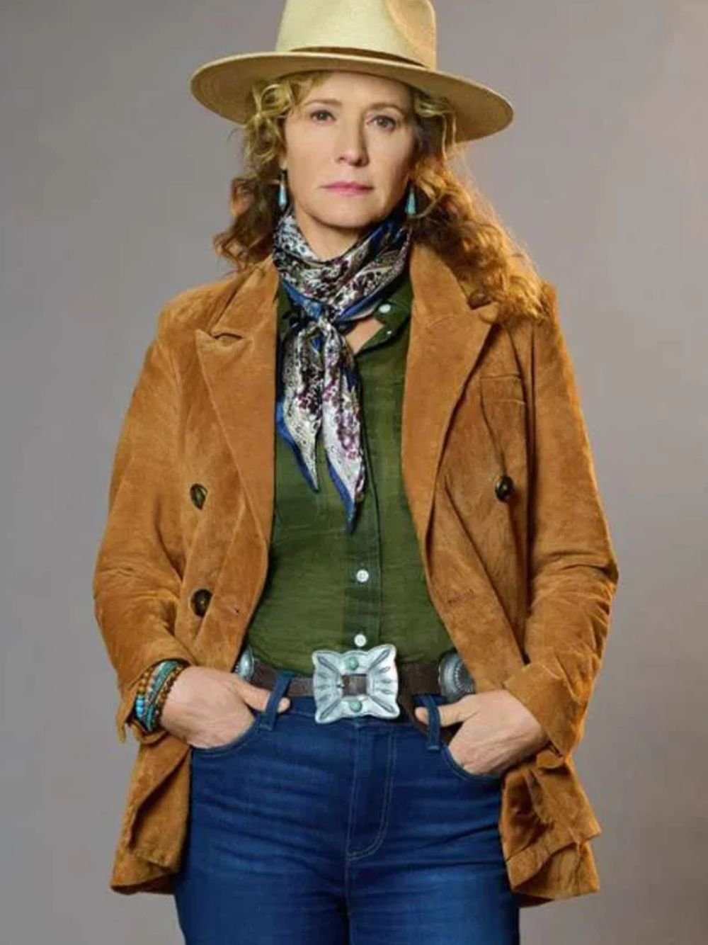 Isabel McMurray TV Series Ride 2023 Nancy Travis Brown Suede Leather Coat