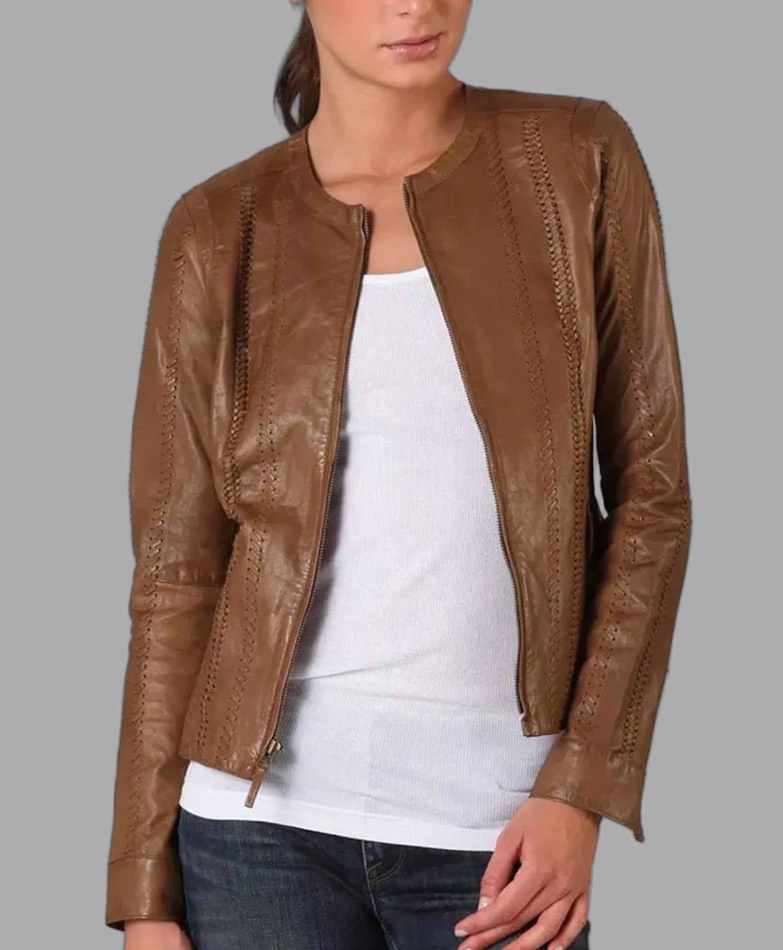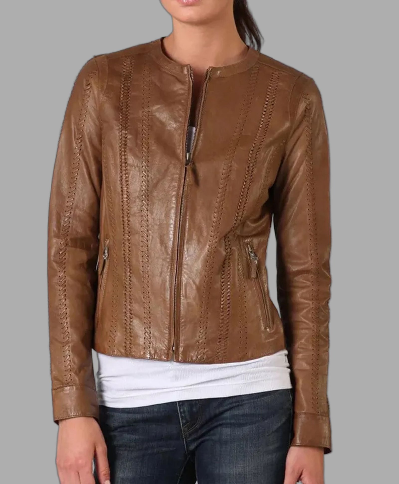 The Sasha Alexander Rizzoli and Isles Maura Isles Brown Leather Jacket by Movie Jackets Hub are made of genuine leather , and inside it, they have a viscose lining that gives you warmth and comfort. It has two pockets inside and two outside, which gives you an option to keep an item or two, It has full-length sleeves, with YKK zippers protecting your hands against pollution and UV rays. The front of the jacket has the YKK zipper and round-styled collars, giving you an exquisite look. The brown color of the jacket makes it very stylish to look at, so gentlemen, order this jacket now.