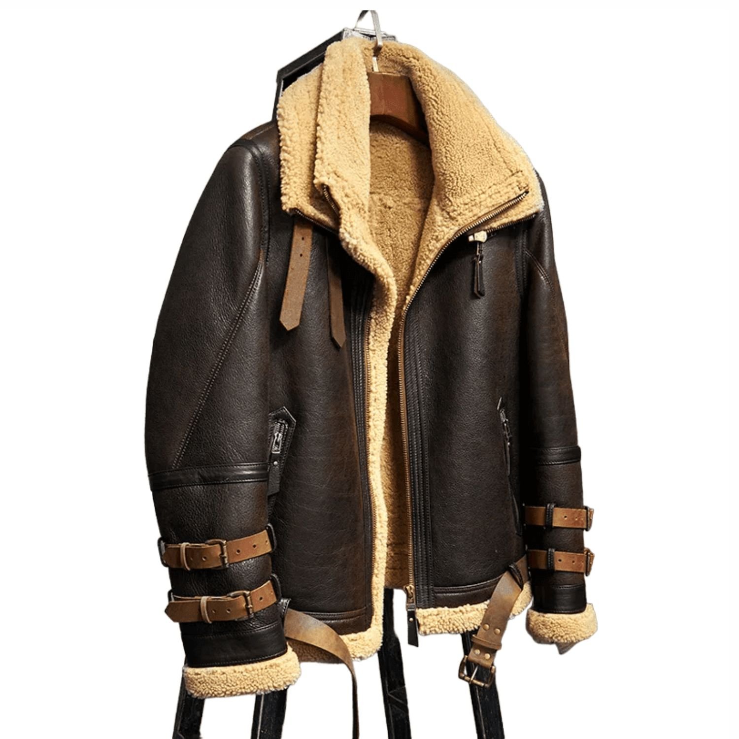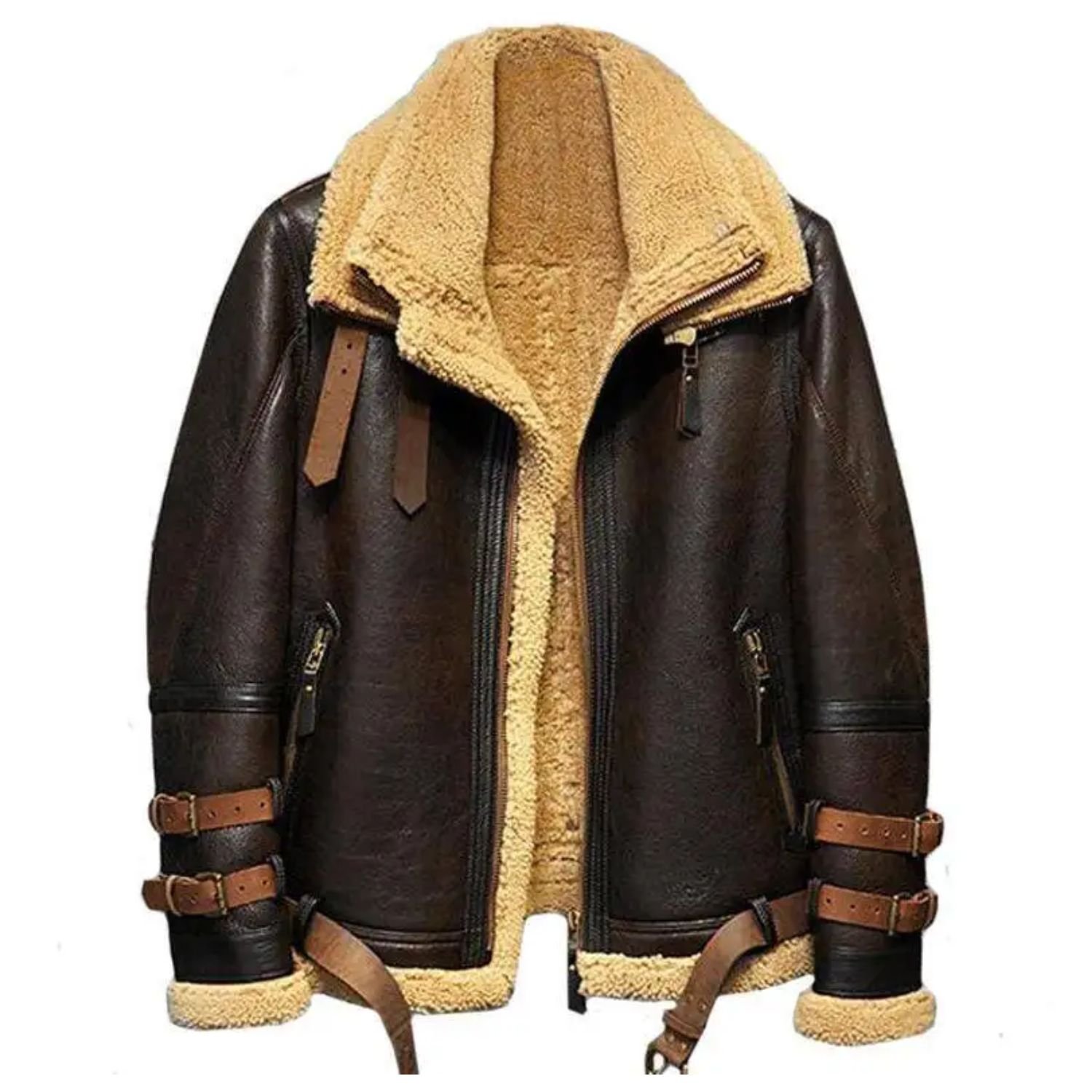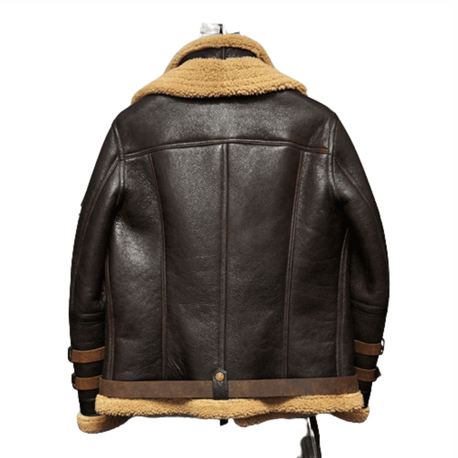 Ronald SF Bomber Double Belted Cuffs Collar Brown Shearling Fur Winter Jacket