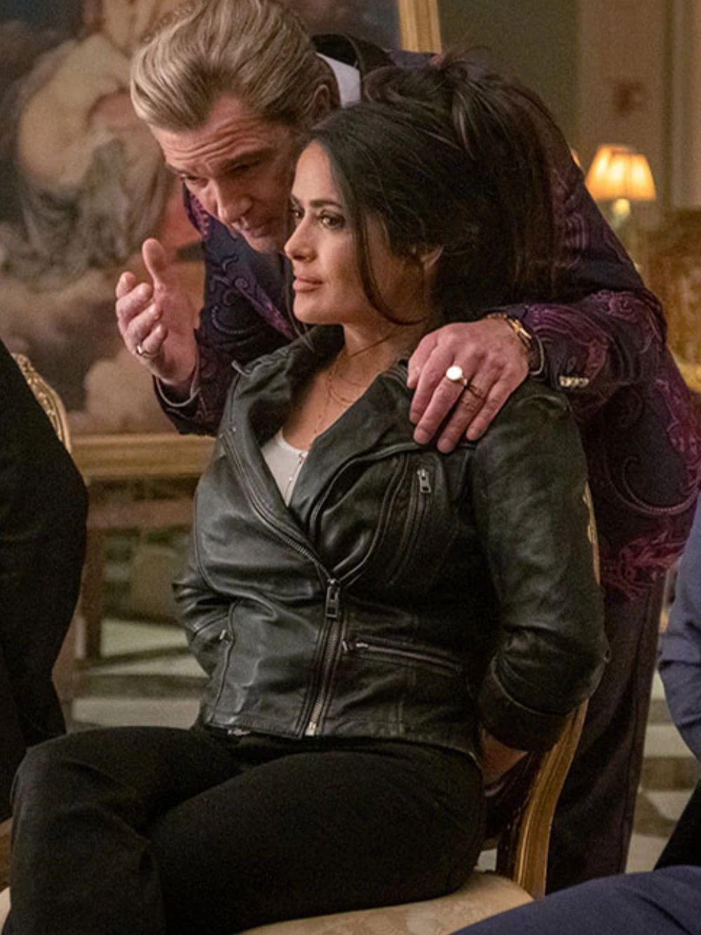 Salma Hayek The Hitman’s Wife’s Bodyguard Leather Black Jacket
