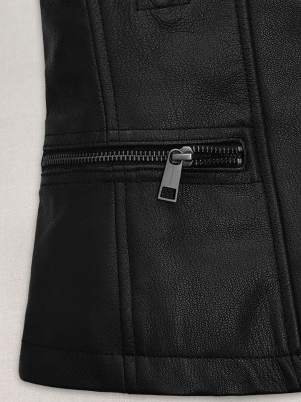 Made from real leather, the jacket by Movie Jackets Hub offers a rich texture and durable quality that ensures long lasting wear. The sleek black finish enhances its versatility, allowing it to pair easily with casual outfits or edgy fashion looks. A front open design with zipper closure provides ease of wear while maintaining a modern and structured appearance.