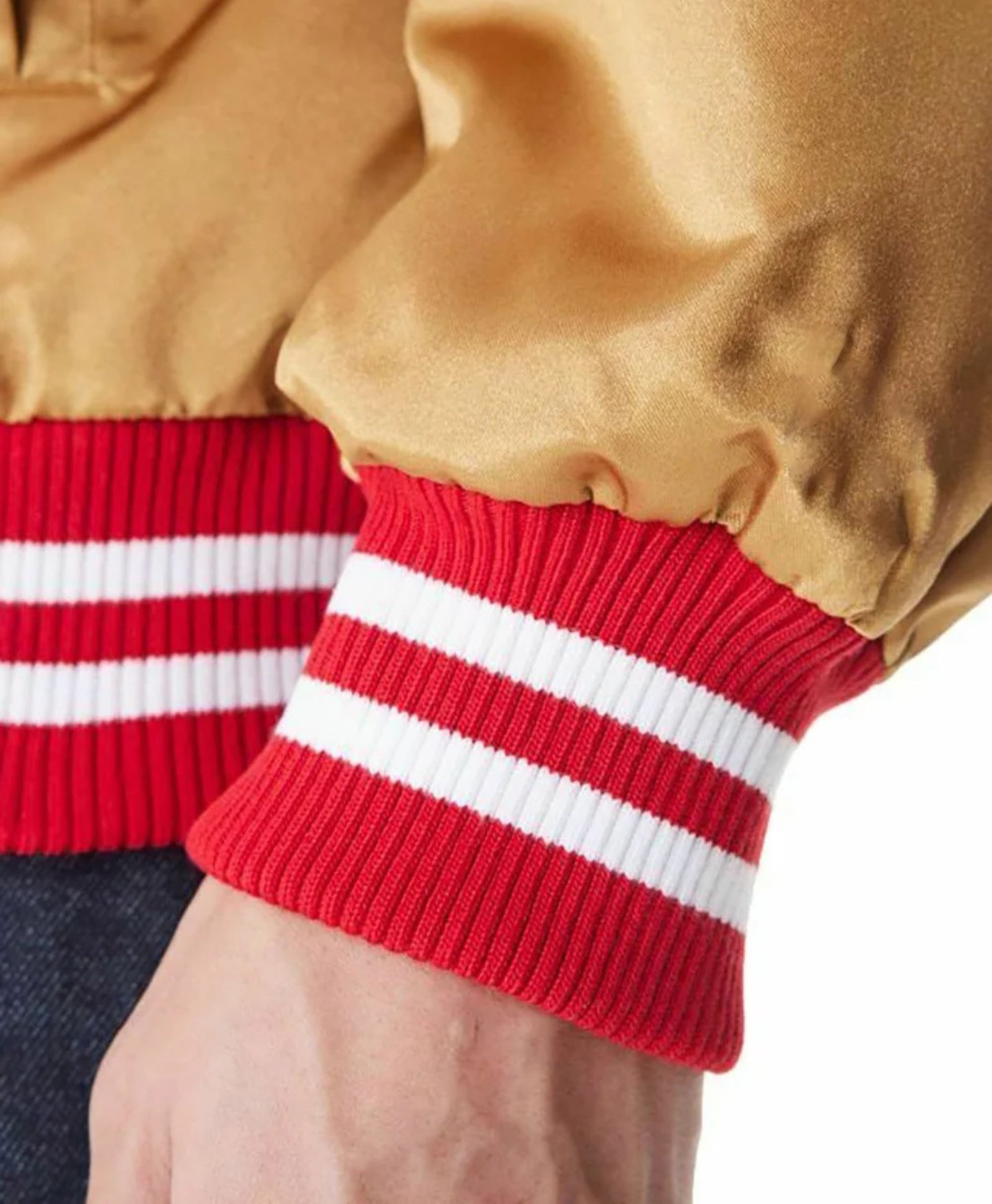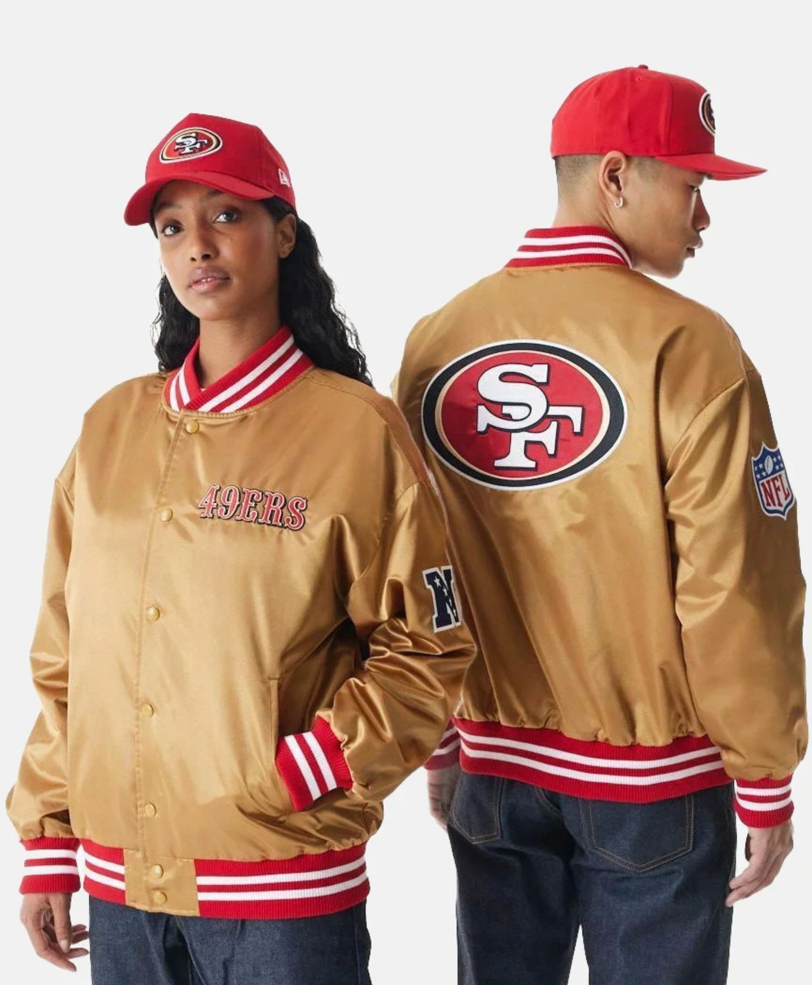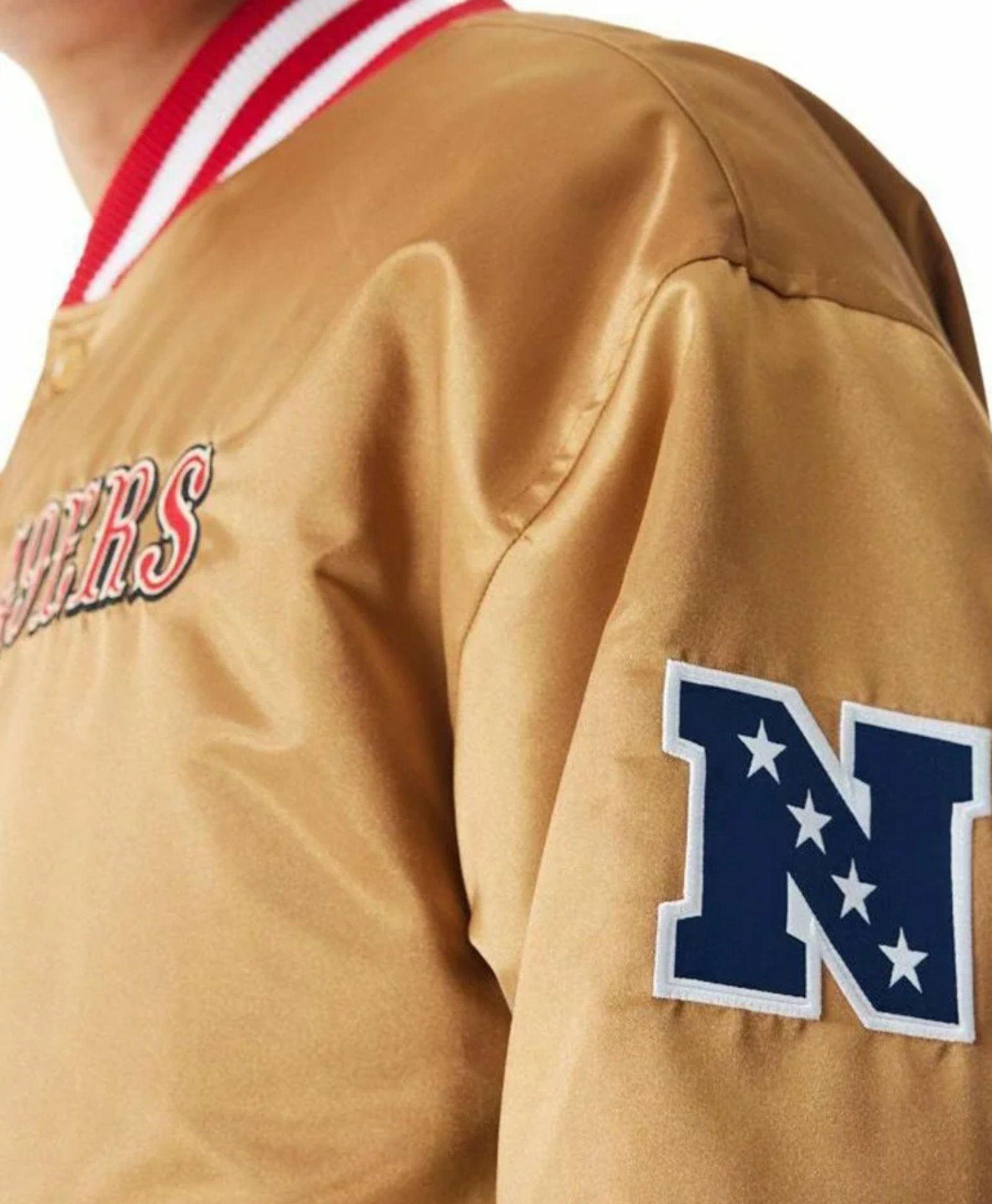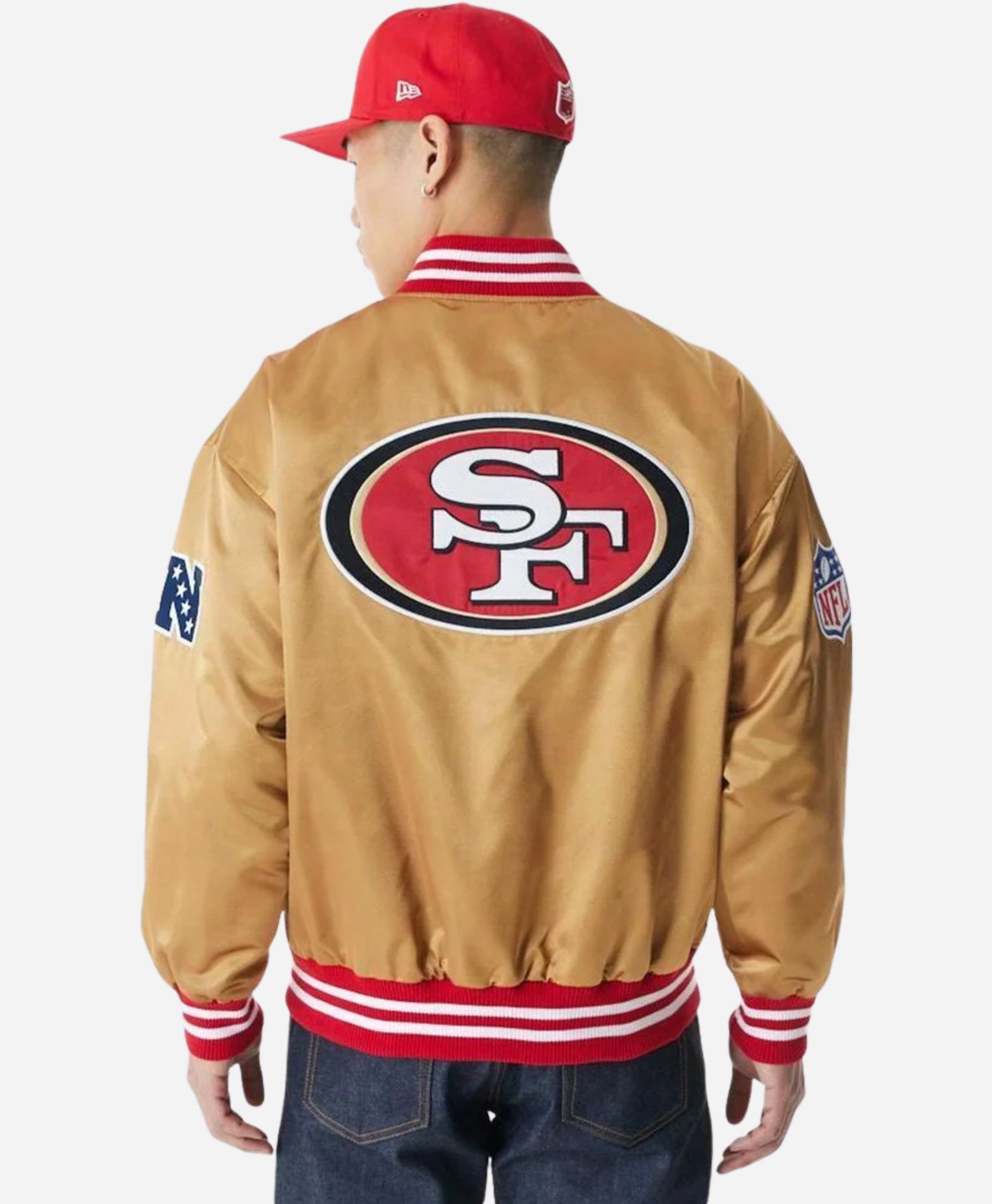 Show your 49Ers pride in style with the San Francisco 49Ers NFL Beige Satin Bomber Jacket, a premium unisex jacket designed for fans and collectors alike. Crafted from 100% polyester satin, this jacket offers a smooth, sleek finish that is comfortable, durable, and perfect for game days, casual outings, or everyday wear in the USA.