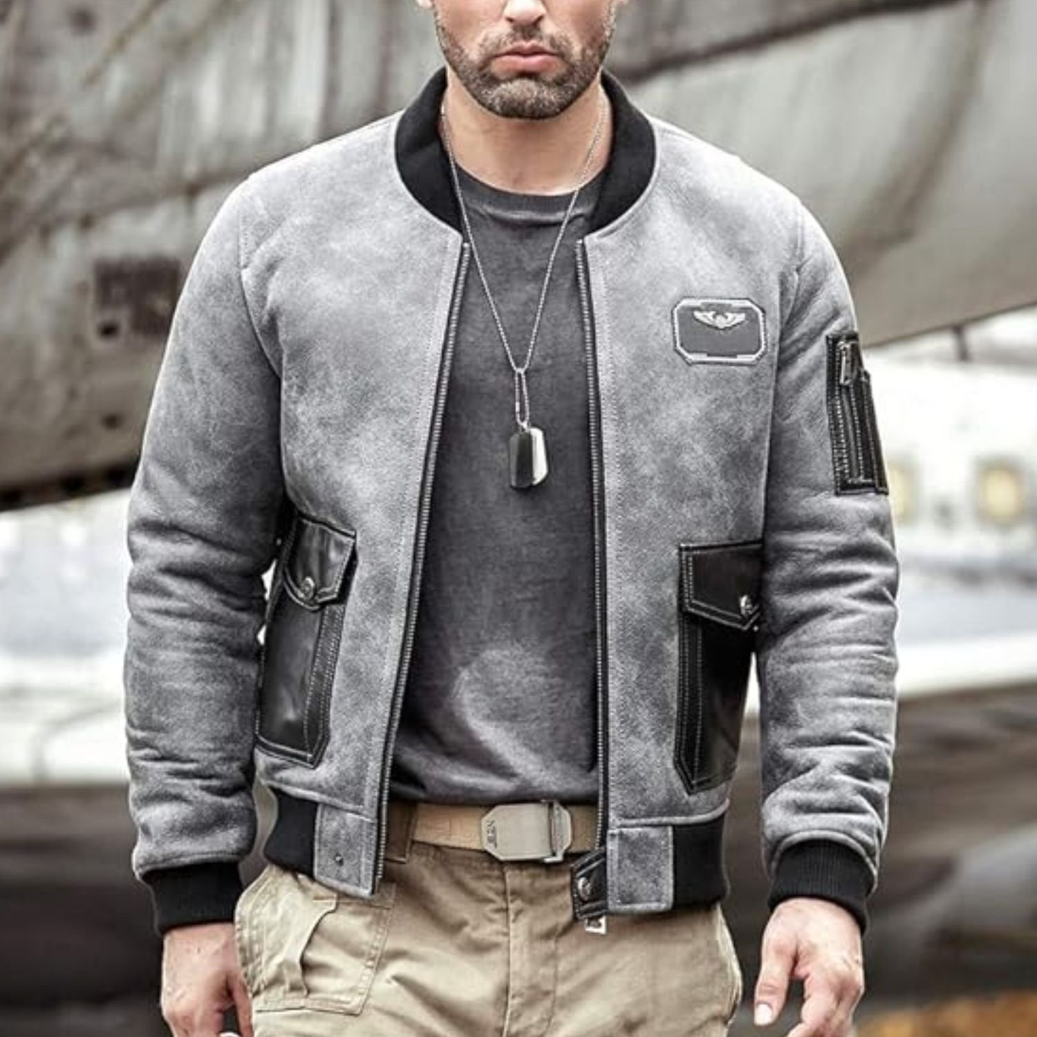 Distressed Jackets always look classy and fascinate the people. They take the style game to the next level with their sophisticated looks and aura. What if your distressed jacket is designed as a bomber and lined with shearling fur? Movie Jacket Hub has introduced this incredible-looking Sanchez Distressed Black Suede Leather MA-1 Bomber Jacket, which will make you chic, and you will make your style statement with great confidence. This jacket will help you in ruling the parties like a rockstar