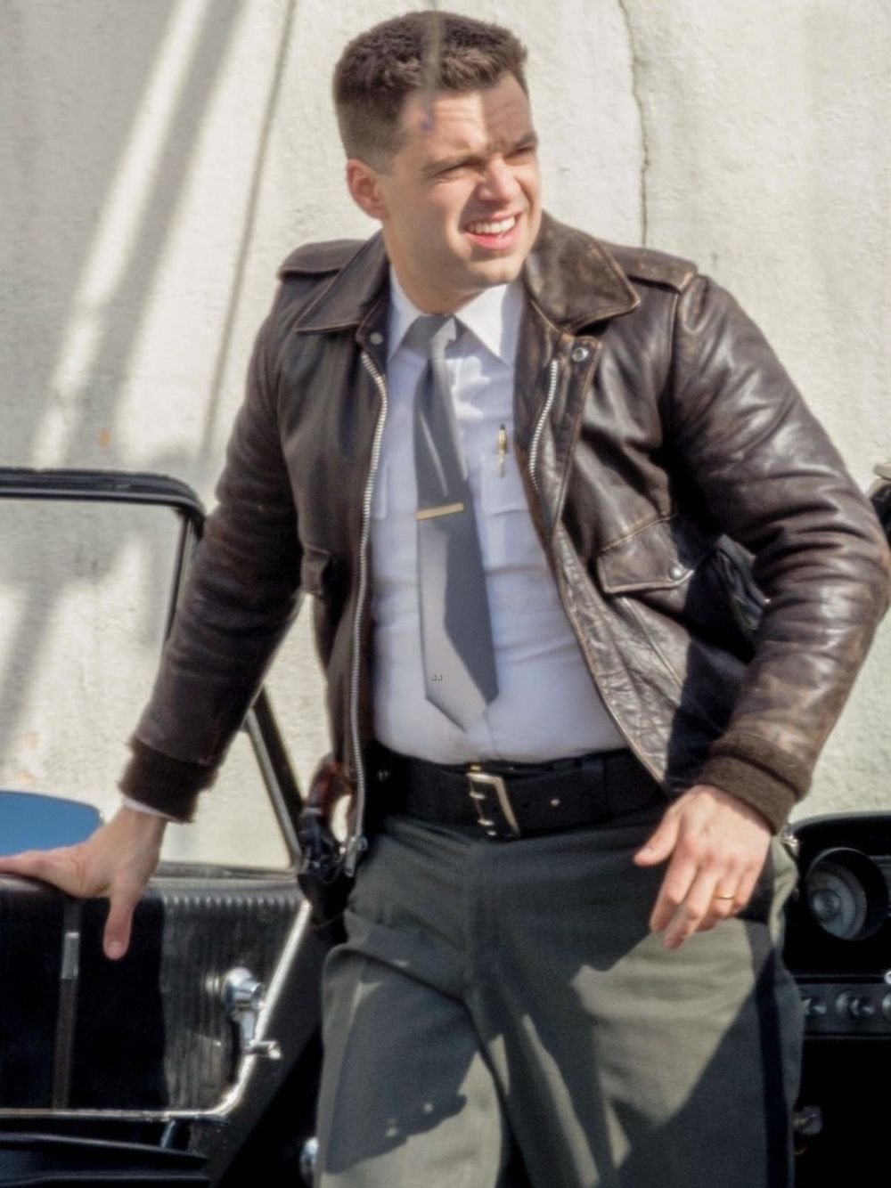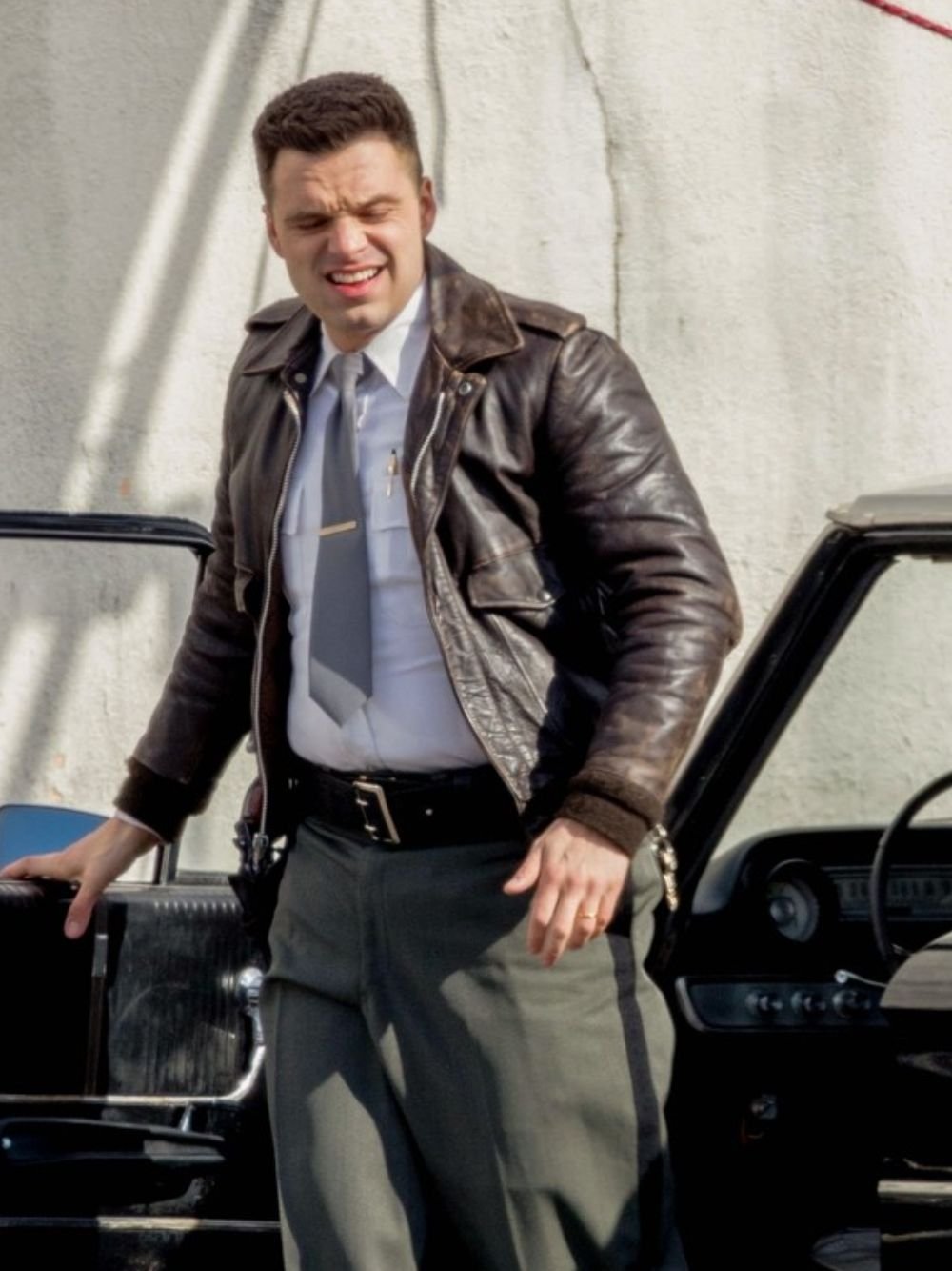 Sebastian Stan Movie The Devil All the Time Lee Bodecker Brown A2 Pilot Bomber Leather Jacket