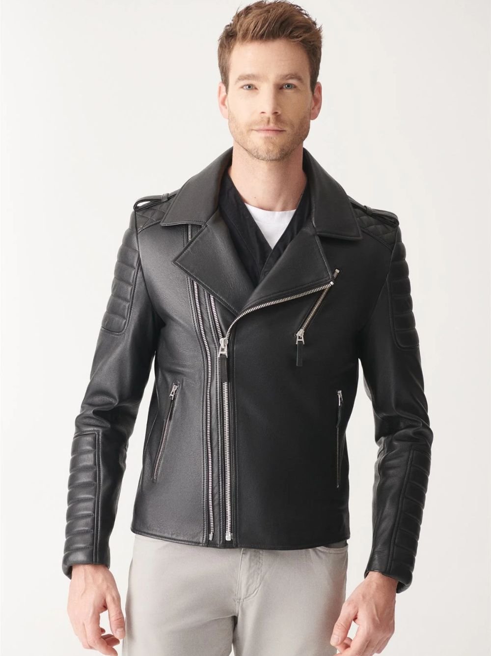 The core of this jacket By Movie Jackets Hub is its Signature Functional Double-Zip System. This dual-fastening design allows for a customizable fit, providing extra room for layering or a tighter, more aerodynamic profile for high-speed rides. Complementing the technical hardware is the Rugged Reinforced Shoulder Detailing, which adds structured dimension to your frame, giving you that iconic armored silhouette.