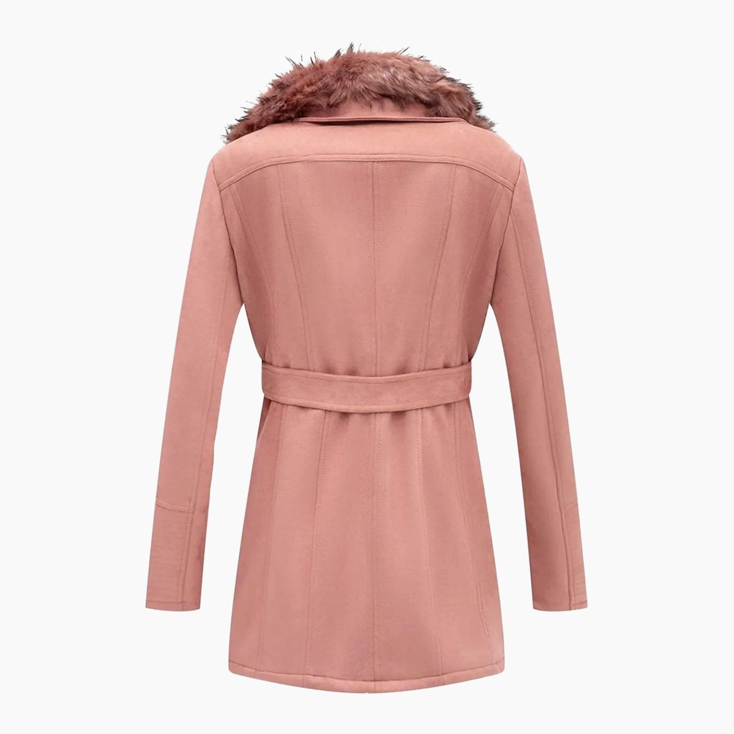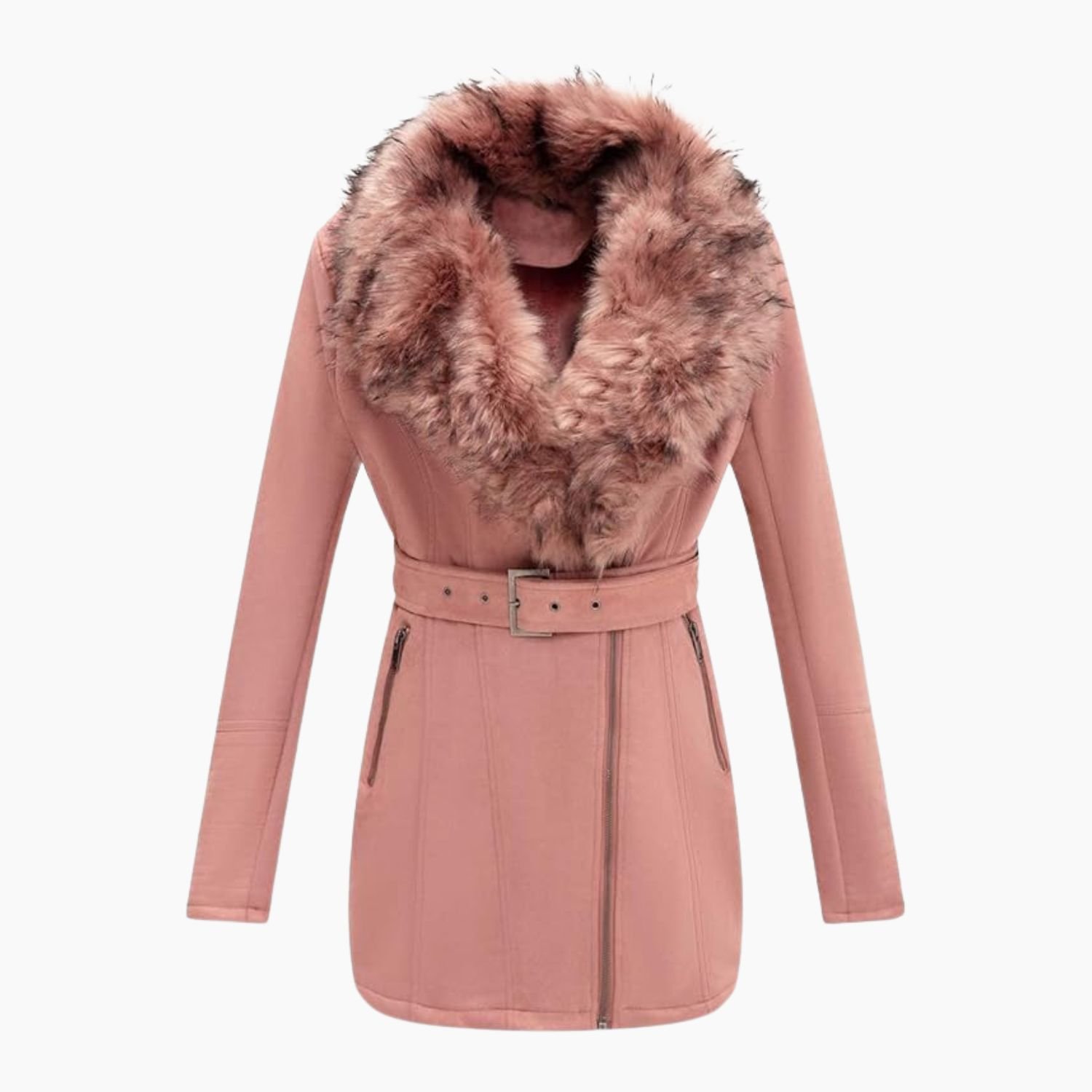 Shearling Pink Coat with Faux Fur Collar Long Coat In Leather For Women