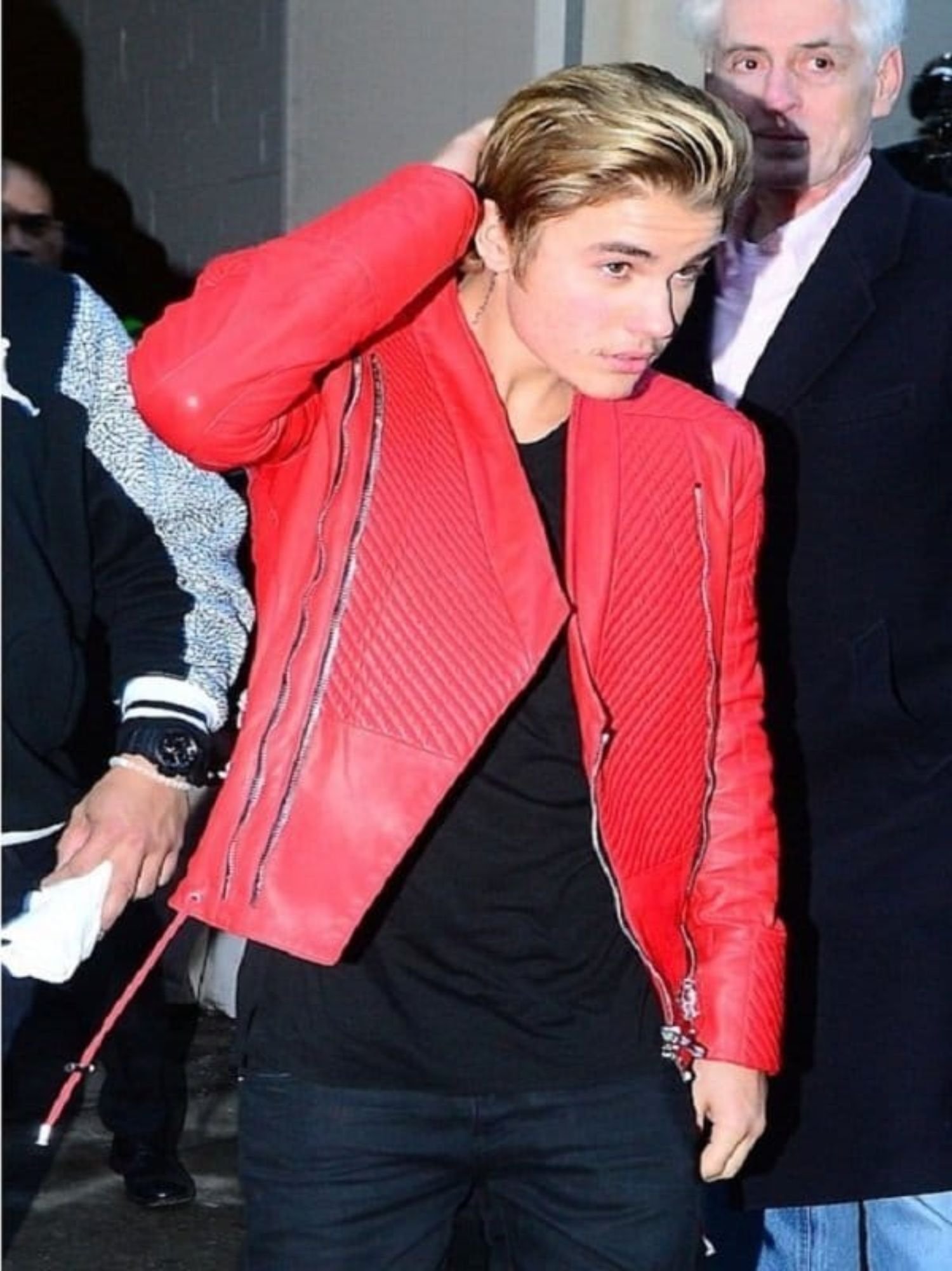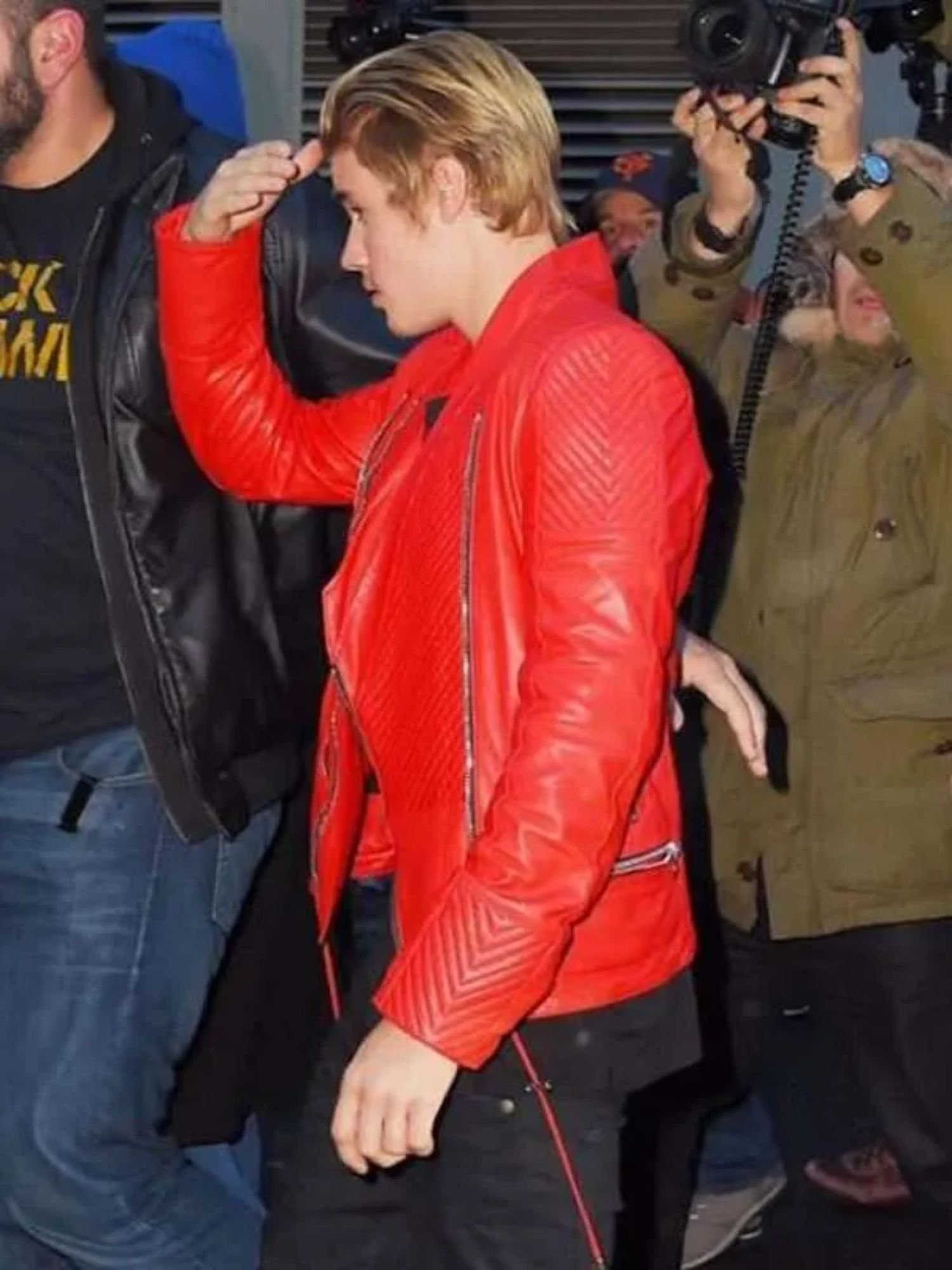 Singer Justin Bieber Red Leather Jacket