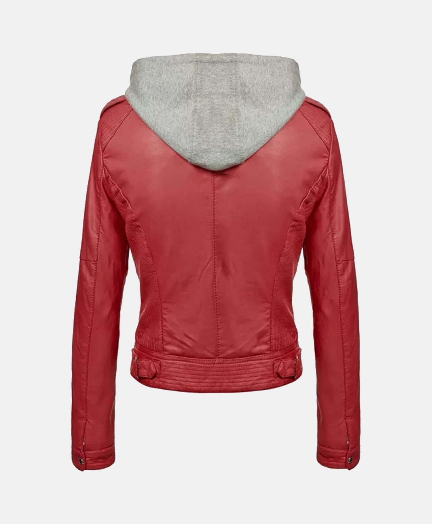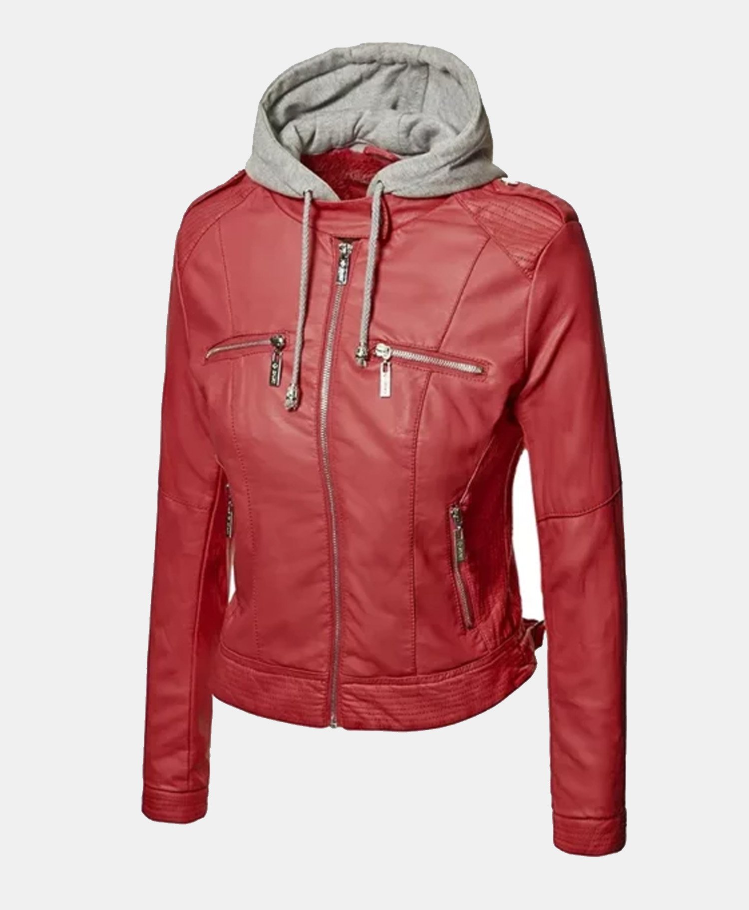 Mens and Womens Slim Fit Hooded Red Genuine Leather Jacket For Sale