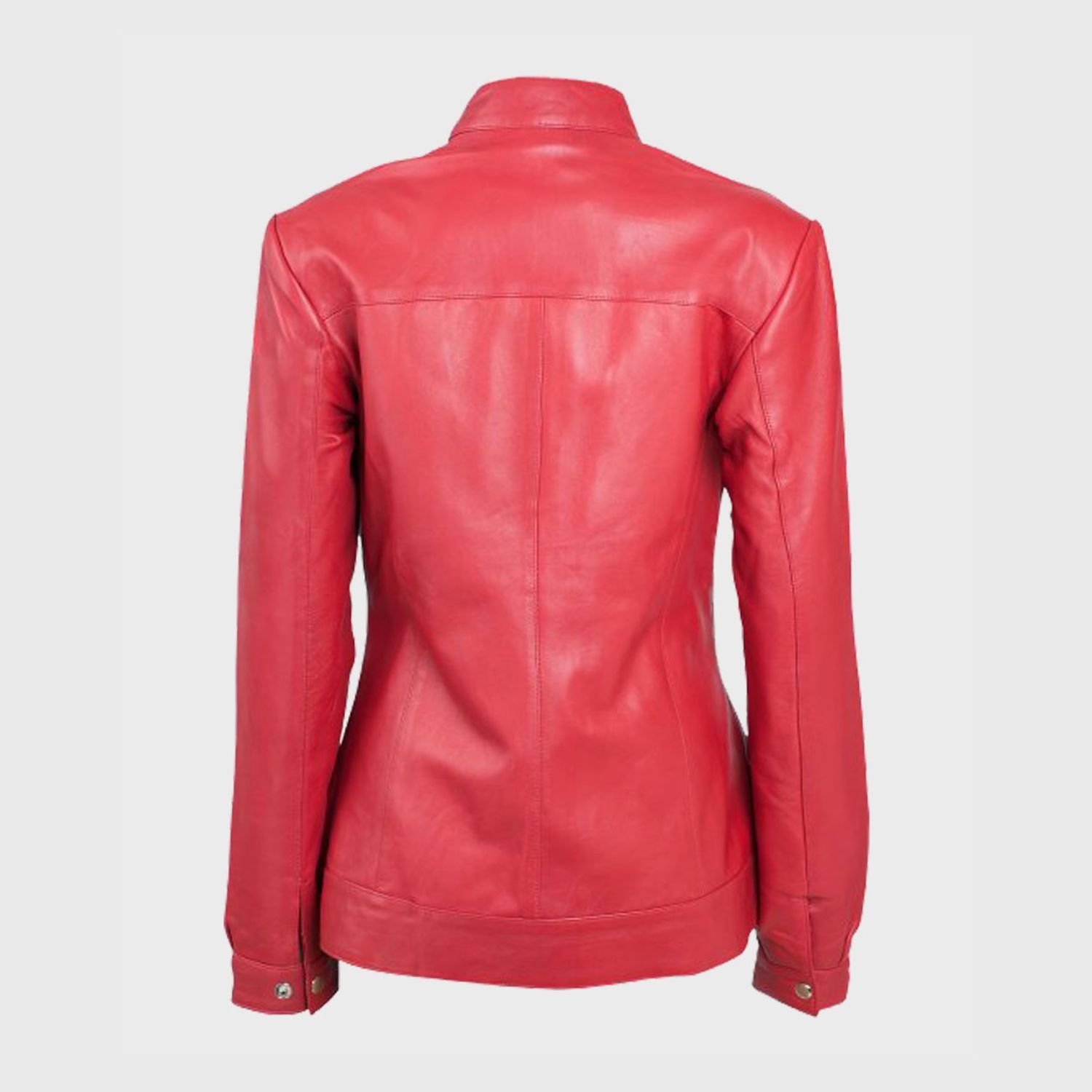 Snap Tab Collar Womens Red Sheepskin Leather Jacket