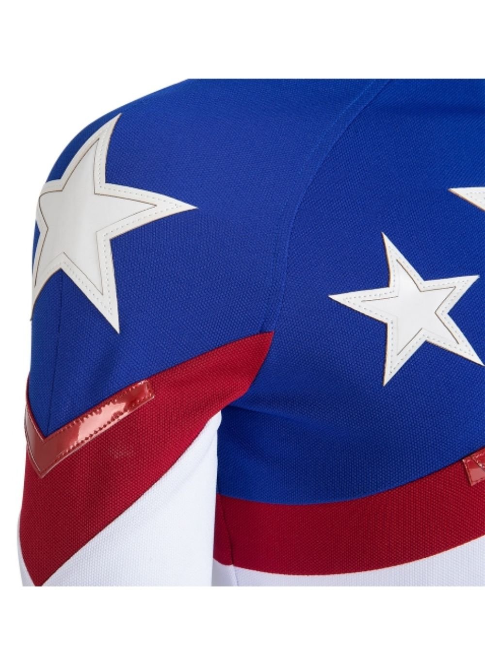 The Stargirl Starman Leather Costume Jacket is an eye catching piece designed for fans who want a screen accurate superhero look. Crafted from real leather, this jacket combines durability with a premium finish that feels authentic and powerful. Its bold blue red and white color pattern high quality jackettes the classic Starman design making it a standout choice for cosplay collectors and anyone who loves superhero fashion.