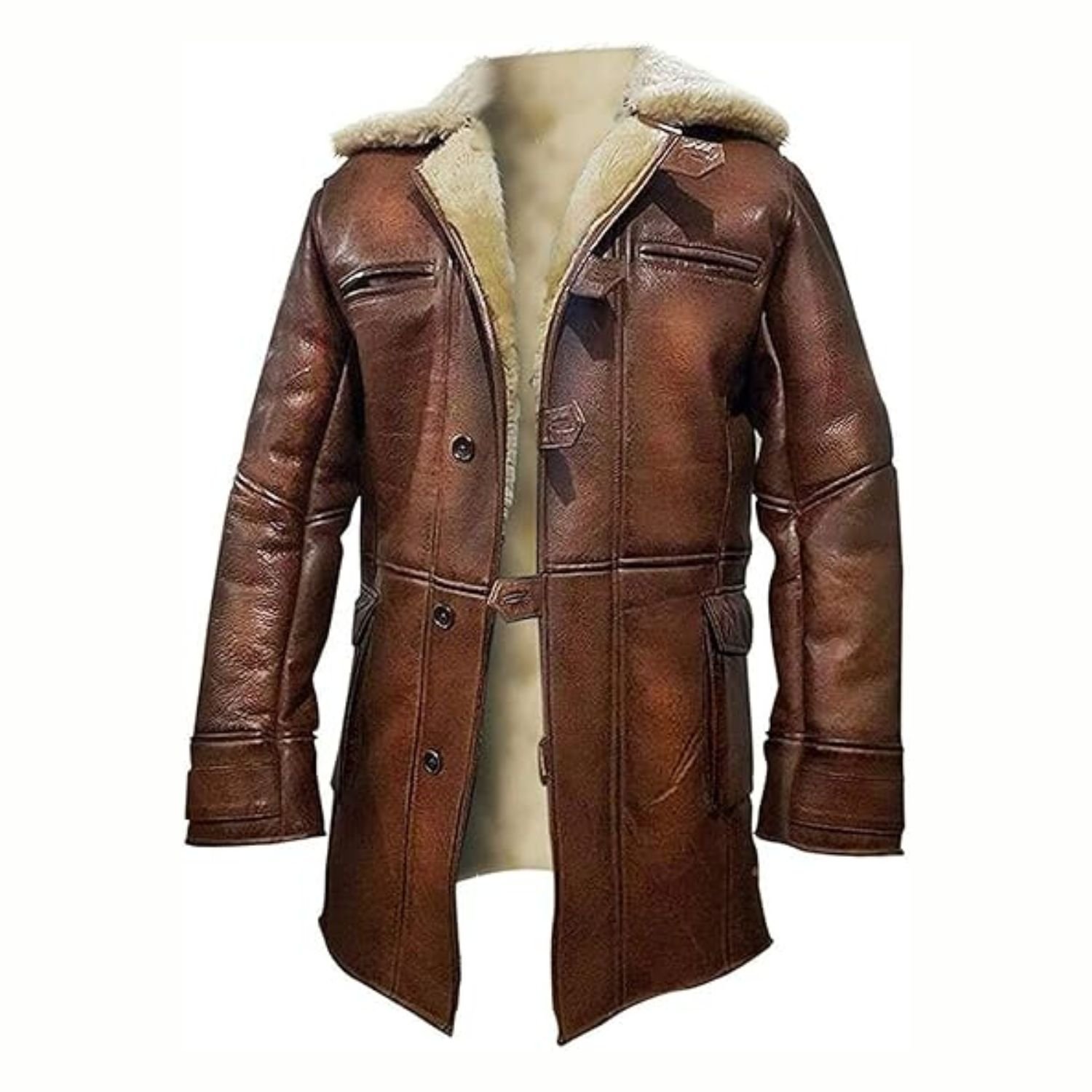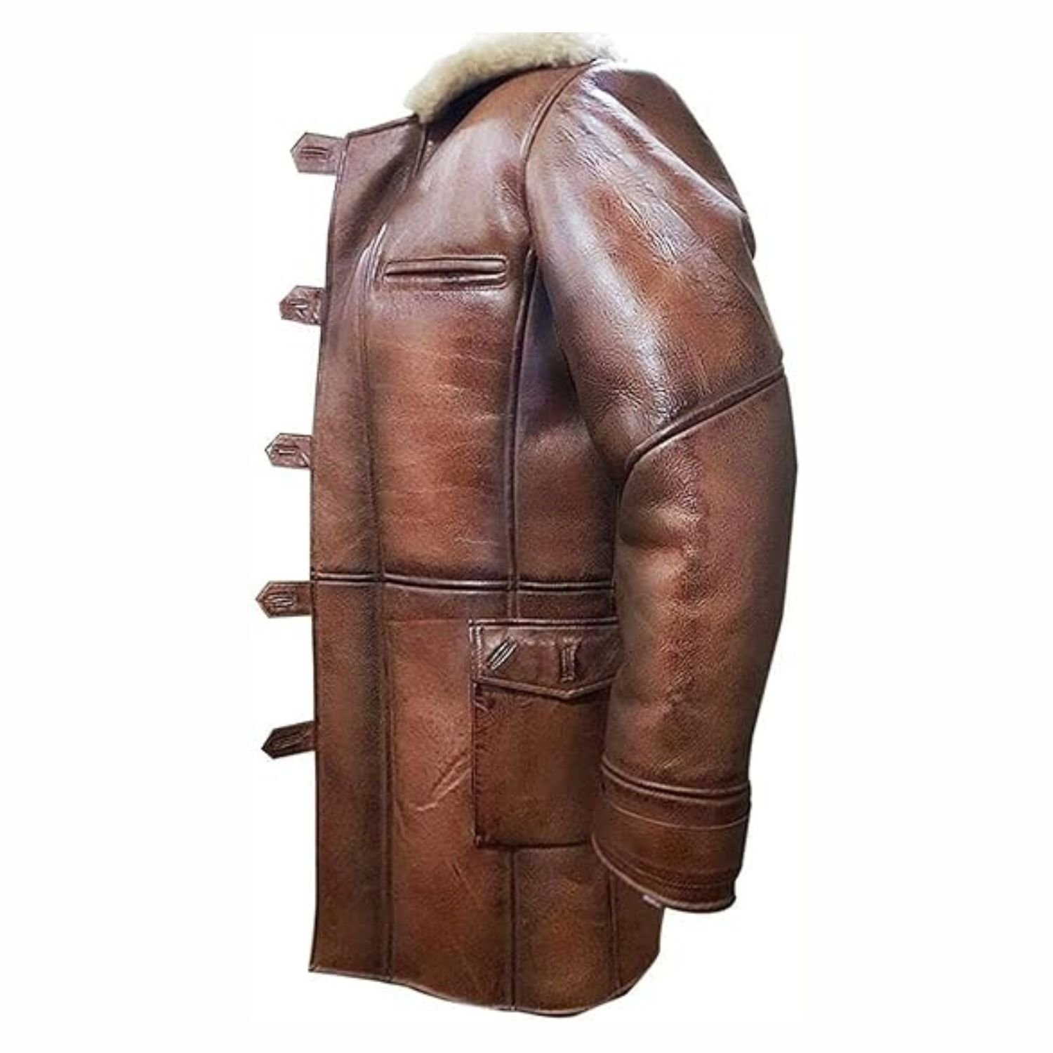 Steven Buttoned Closure Four Pockets Distressed Brown Shearling Fur Aviator Leather Coat