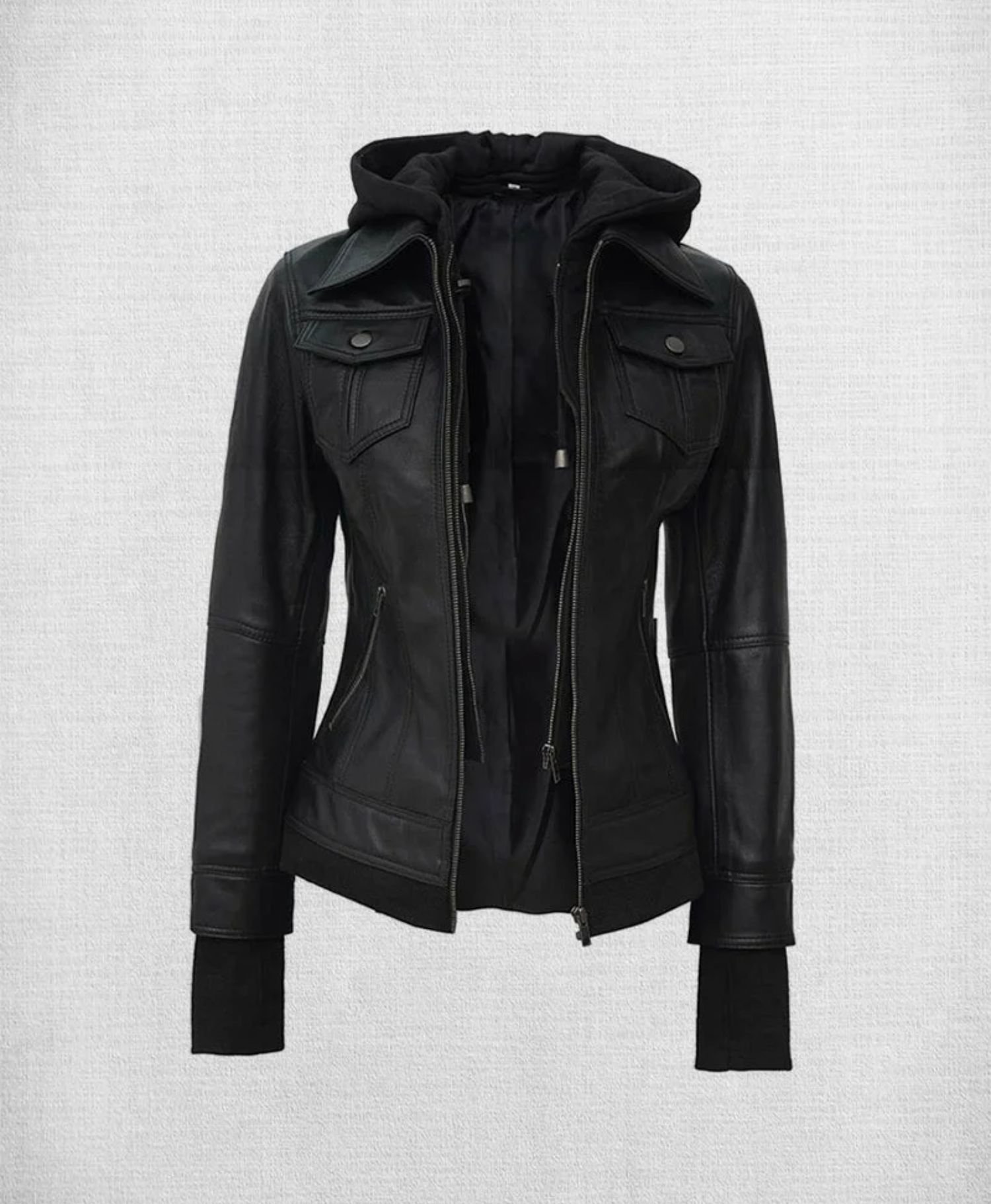 Upgrade your wardrobe with the Stylish Black Leather Bomber Jacket with Hood by Movie Jackets Hub. This versatile and modern jacket combines the timeless appeal of a leather bomber with the added functionality of a removable hood, making it the perfect outerwear choice for any occasion. Whether you’re heading out for a casual day, a night out, or just need a stylish layer for chilly weather, this jacket has you covered.