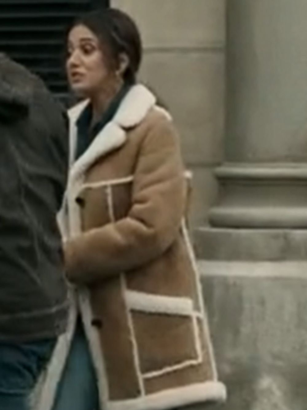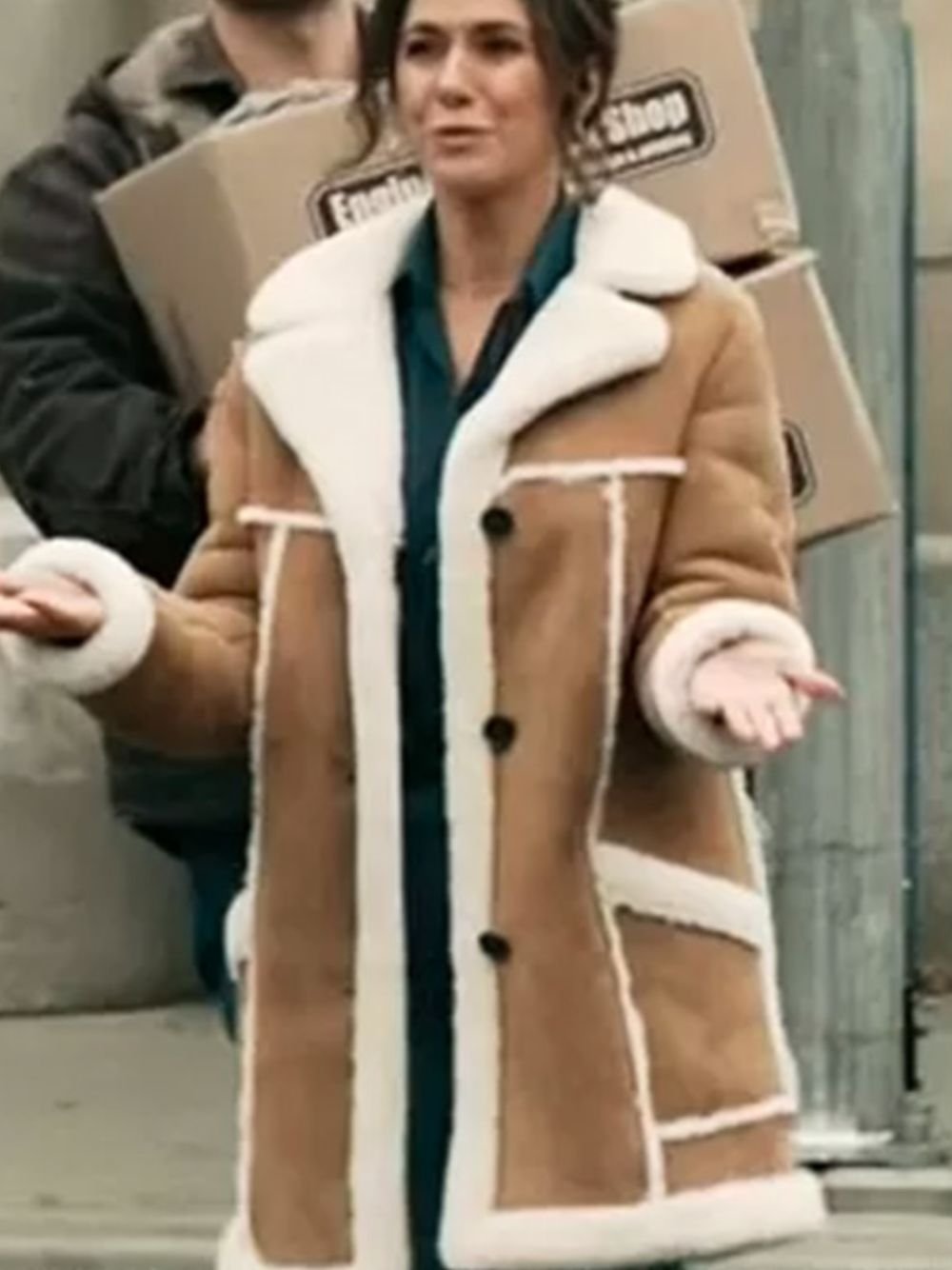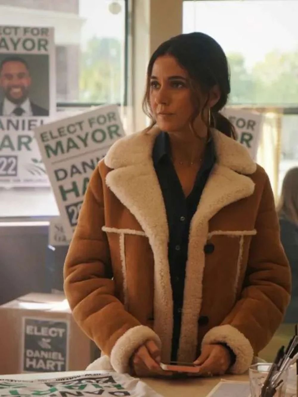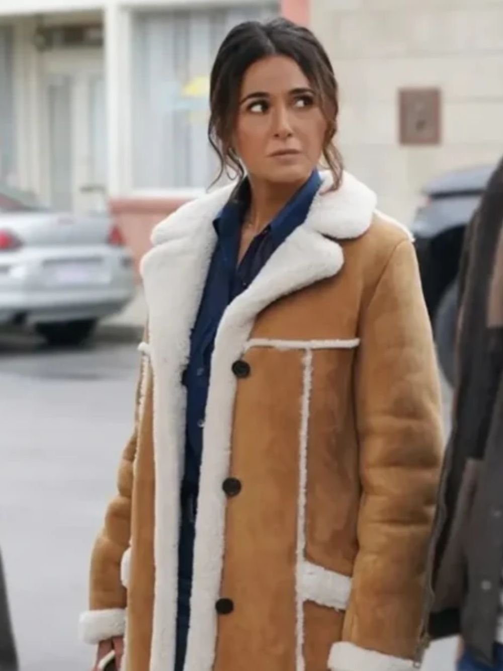 Emmanuelle Chriqui Superman And Lois Lana Lang Cushing Mid Length Brown Suede Shearling Fur Coat
