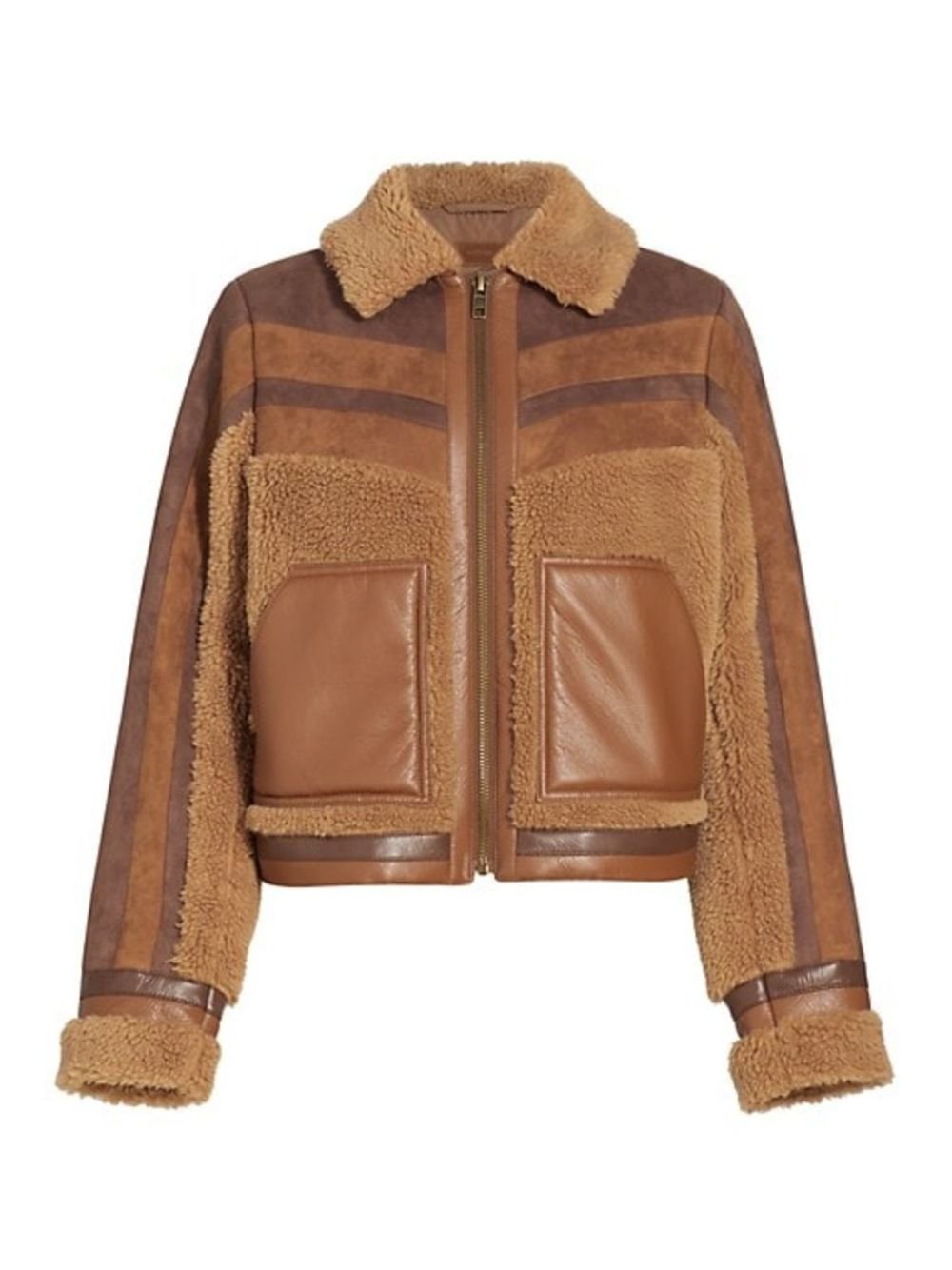 Natalie Irons Series Superman & Lois Season 3 Episode 9 Tayler Buck Sherpa Faux Fur Leather Jacket