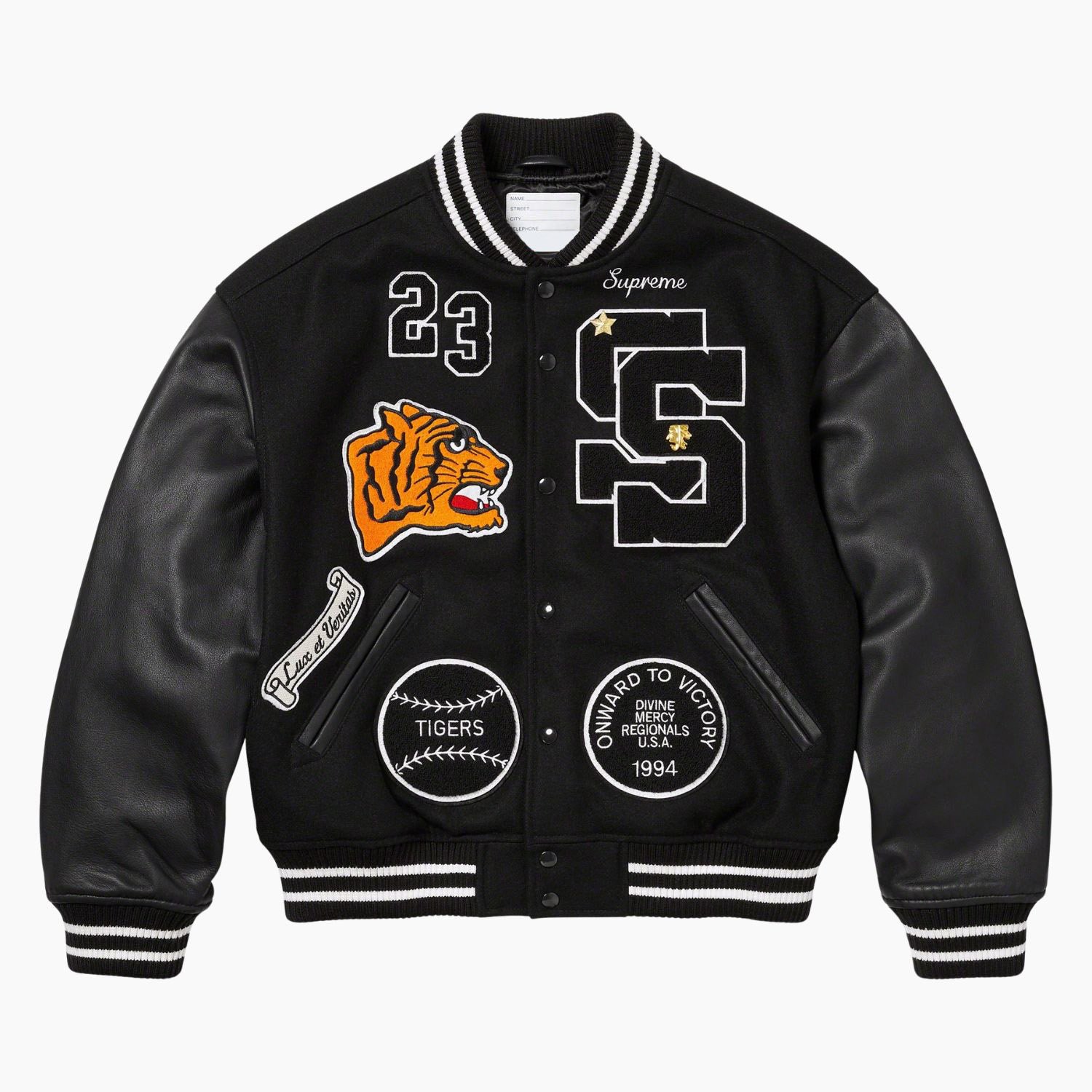 Supreme Tiger Black Varsity Jacket – Classic Wool and Leather Letterman Style