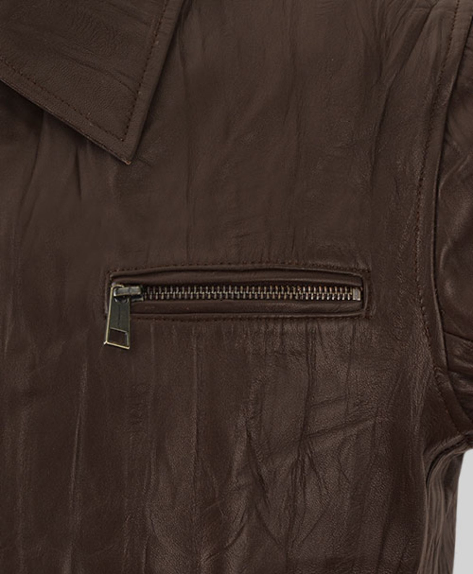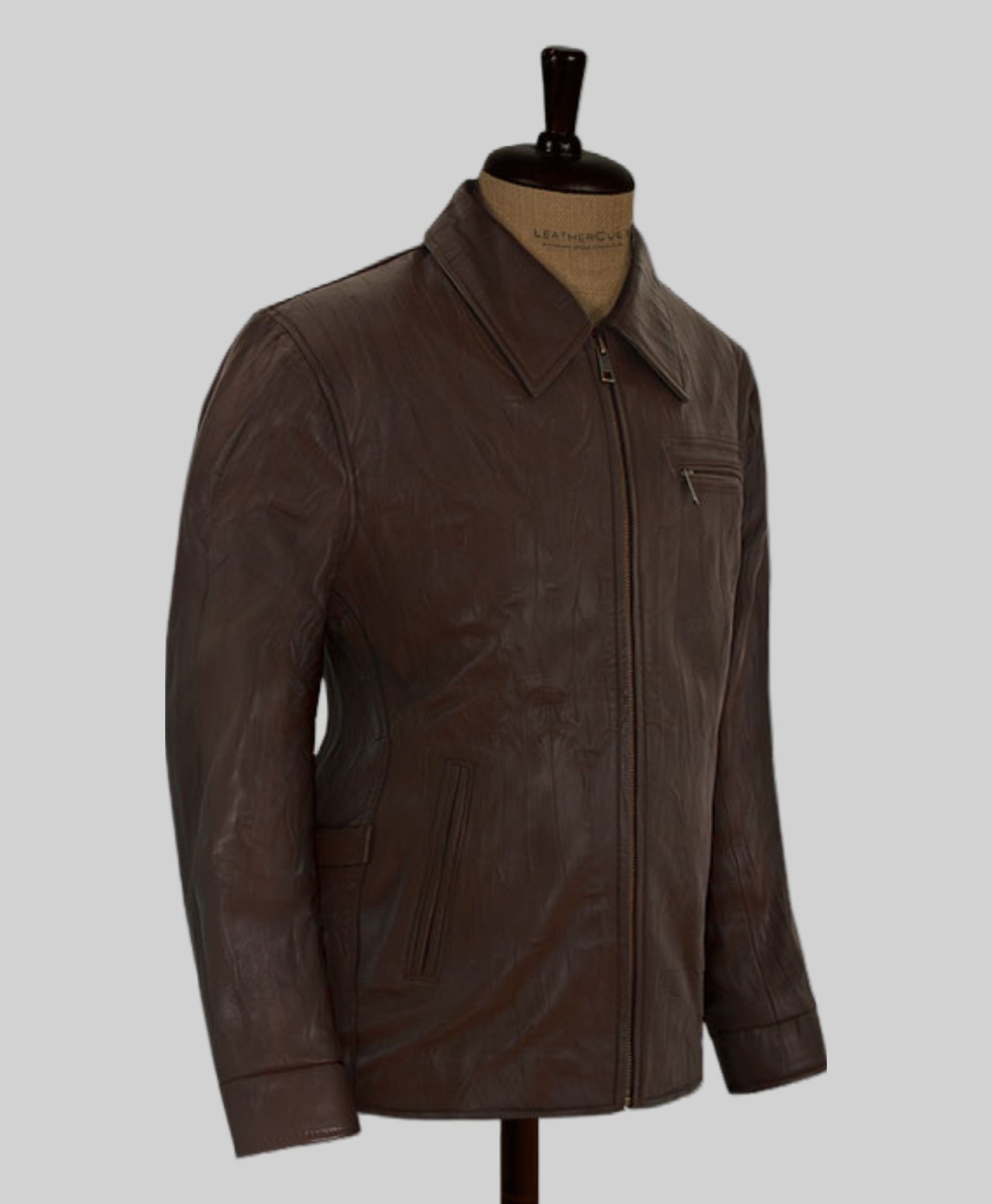 Surrogates Tom Greer destress leather jacket has brown color and shirt style collar which give it a little casual look to this jacket and allow you to wear with multiple styles and color scheme. Surrogates Tom Greer Distressed Brown Jacket has full-length sleeves which are attached with snap tab cuffs which allow you to keep them open or close them as per your desire. Bruce Willis distressed brown leather jacket has zip fastening front and zipper pockets over the chest and waist area.