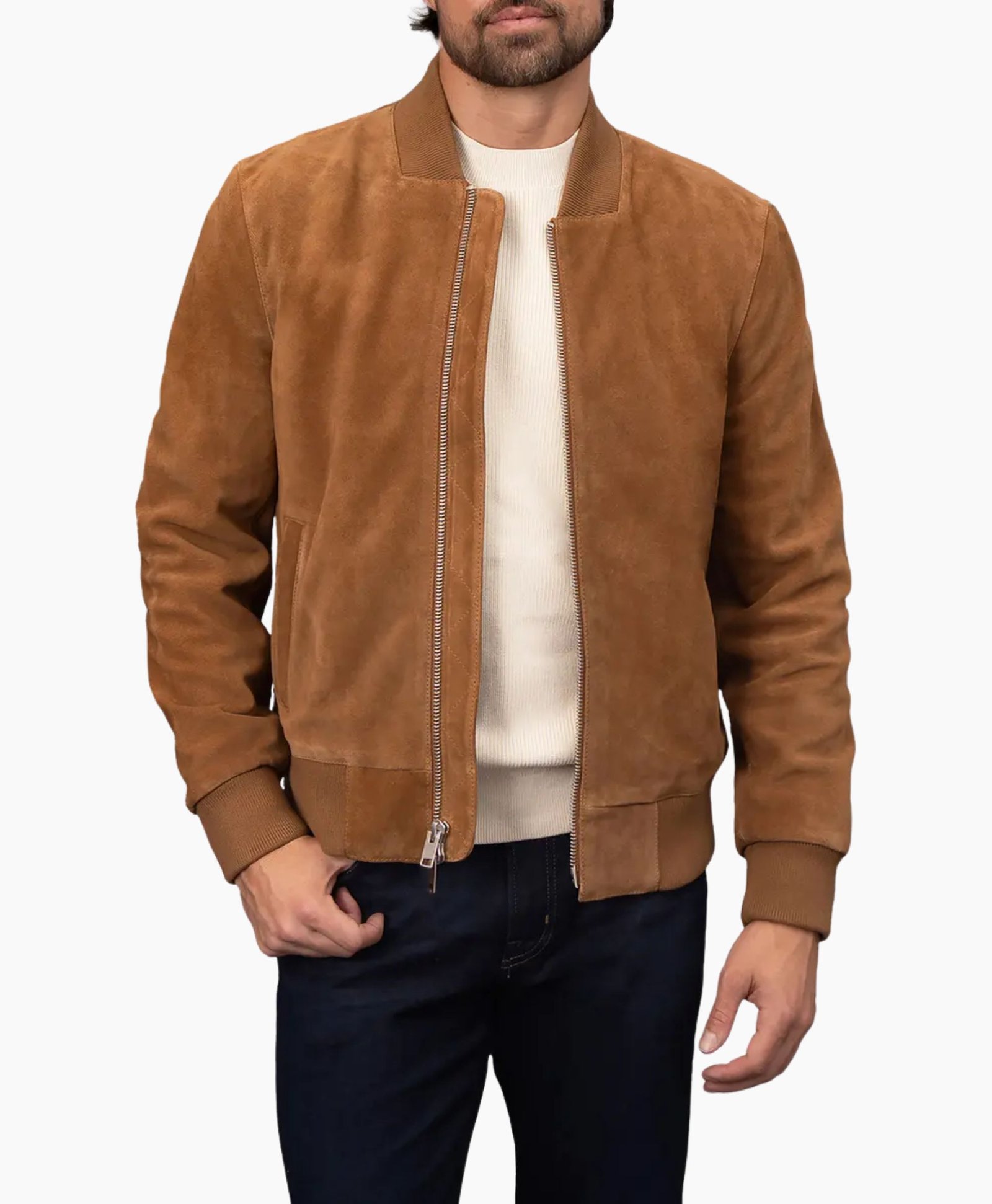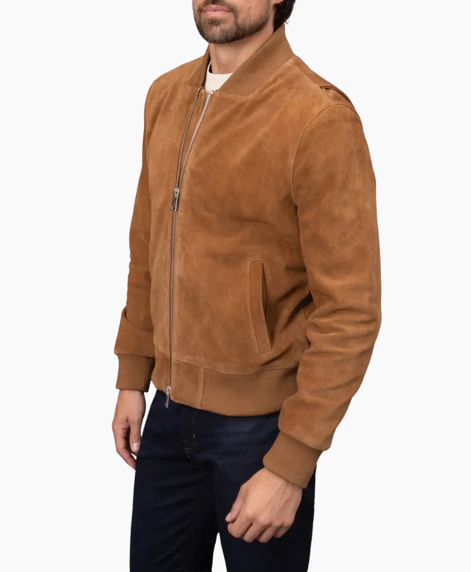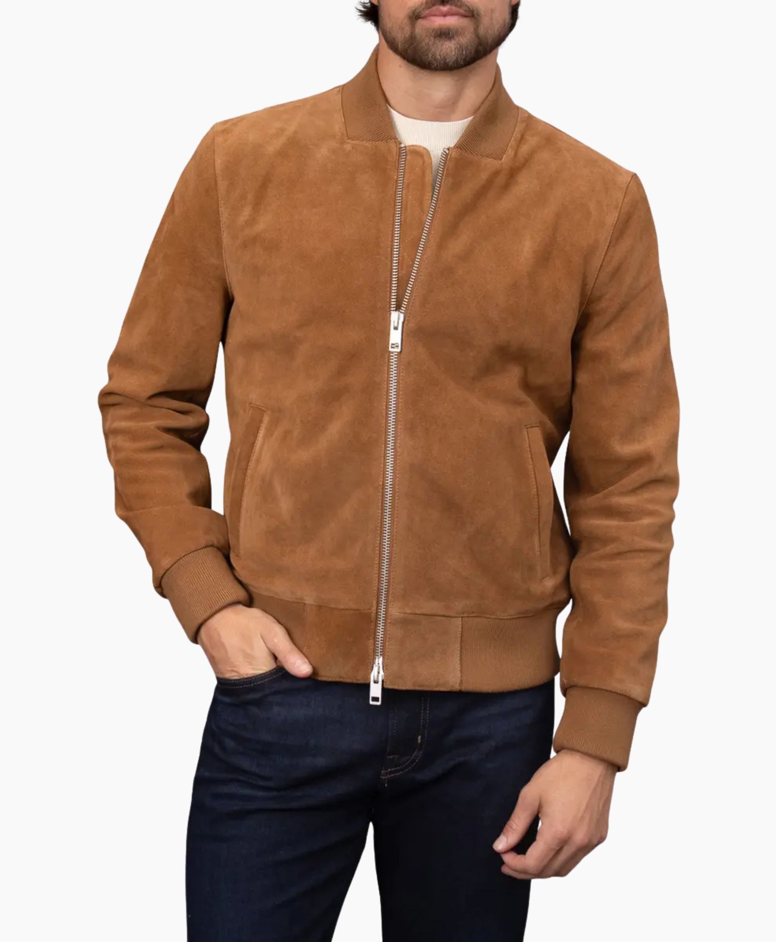 Functional as it is fashionable, the Tan Suede Trucker Jacket by Movie Jackets Hub includes two front outer pockets and two interior pockets, offering ample space for essentials while keeping a clean, structured look. Perfect for casual outings, weekend rides, or smart-casual occasions this jacket redefines effortless style.