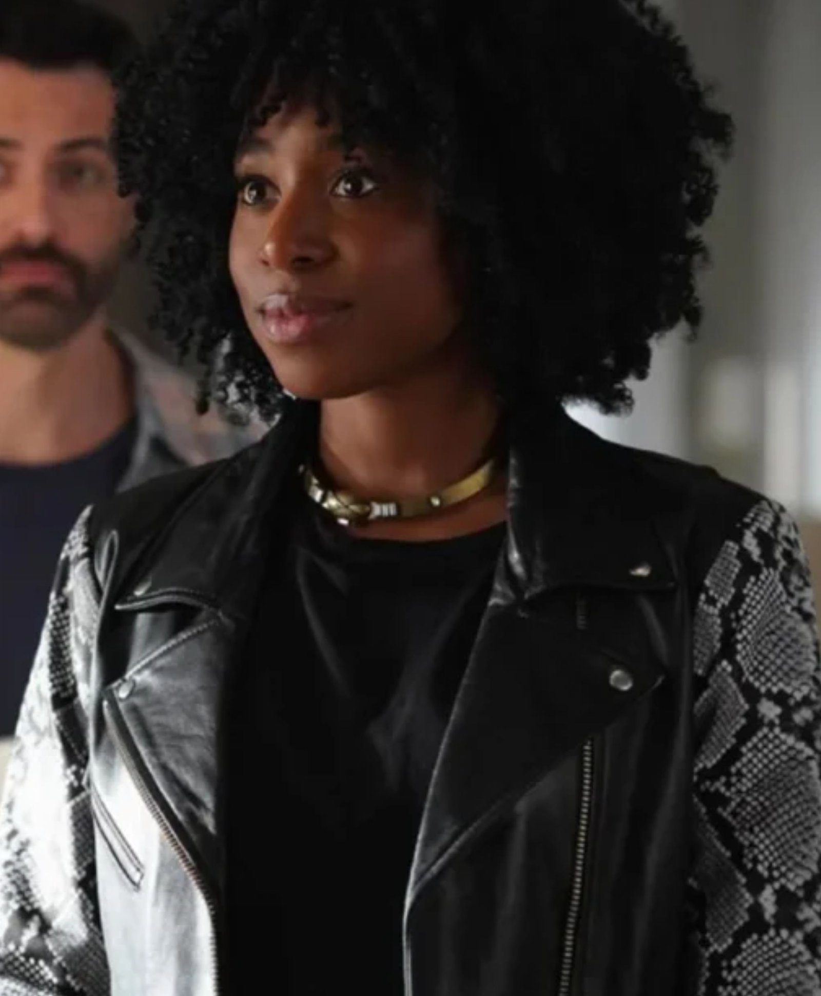 Kirby Howell-Baptiste Why Women Kill Taylor Harding Snake Pattern Black Leather Jacket